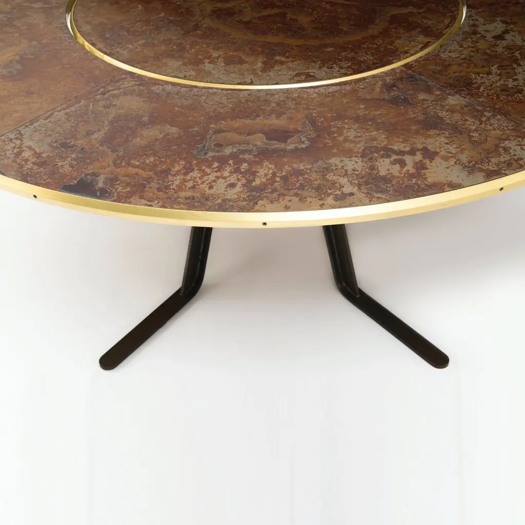Giro Circular Rotating Dining Table, Treated Iron And Brass By Mario Milana