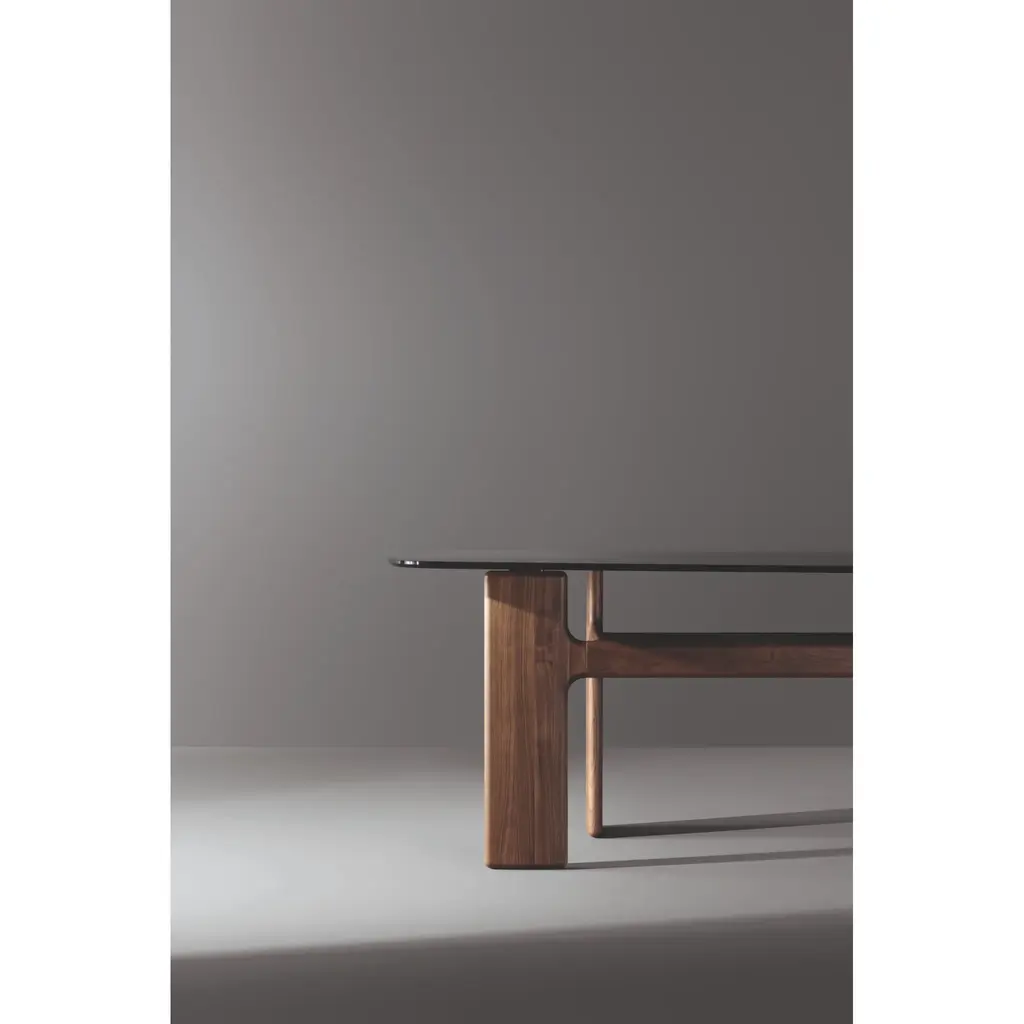 Designed by Marconato & Zappa, the Hippos dining table catches the eye thanks to its archetypal shape which blends the clear and regular lines of the base with the delicate oval shape of the legs. This composition gives the table a dynamic silhouette with great visual strength, capable of changing from slim to solid depending on the light, the surrounding space and the point from which it is observed. The different finishes available for the base of the table - from the lacquered version to the highly prized solid wood (Hippos Wood) – all enhance the craftsmanship required to produce it along with the painstaking attention to detail. The support surface is available in a range of options including glass, ceramic, marble and wood, thereby guaranteeing the ability to adapt to any environment.