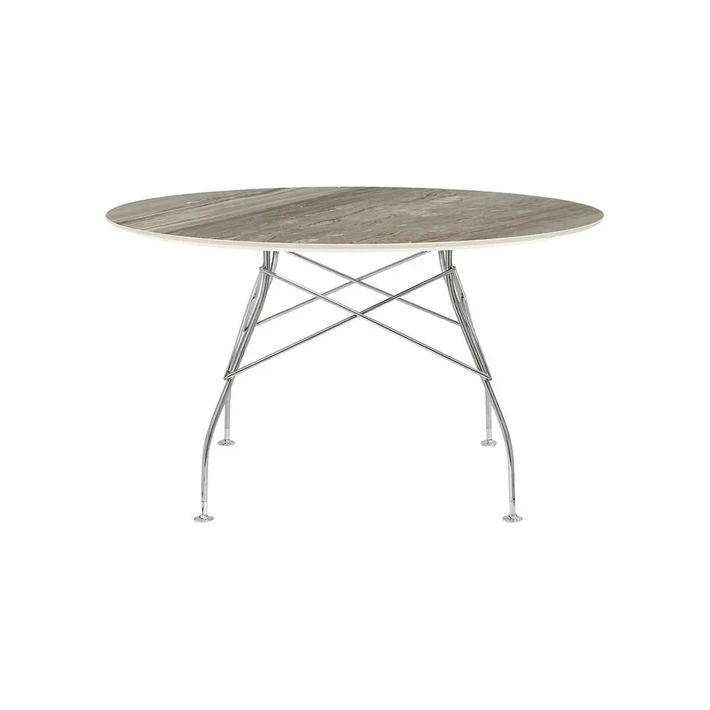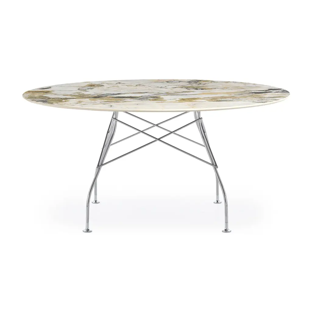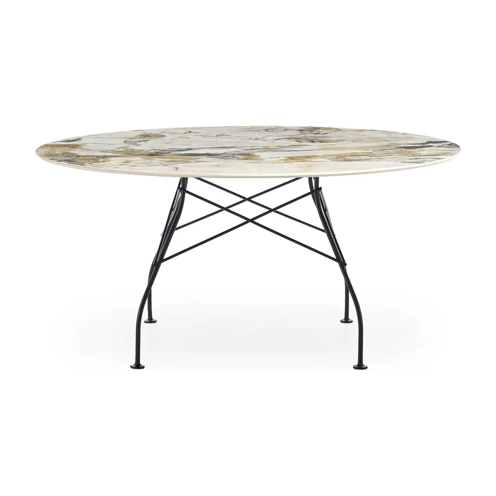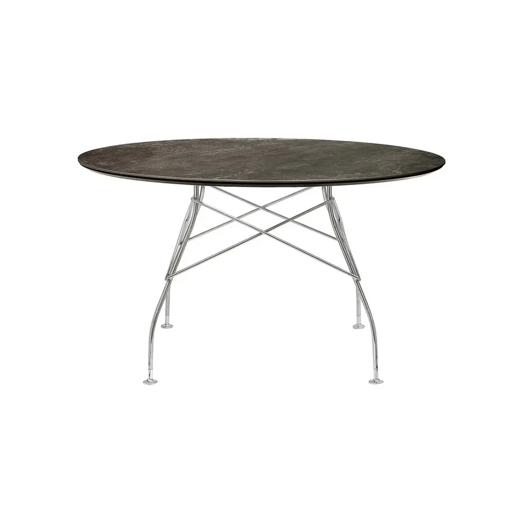 A family of tables ideal for the home and office. The light steel structure is made particular by the use of the cross element that joins the legs on each of the four sides, supporting the top. Features