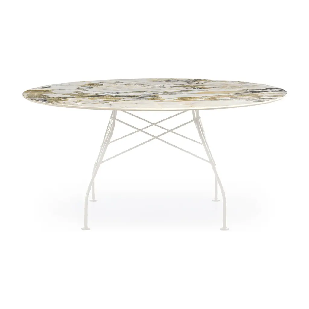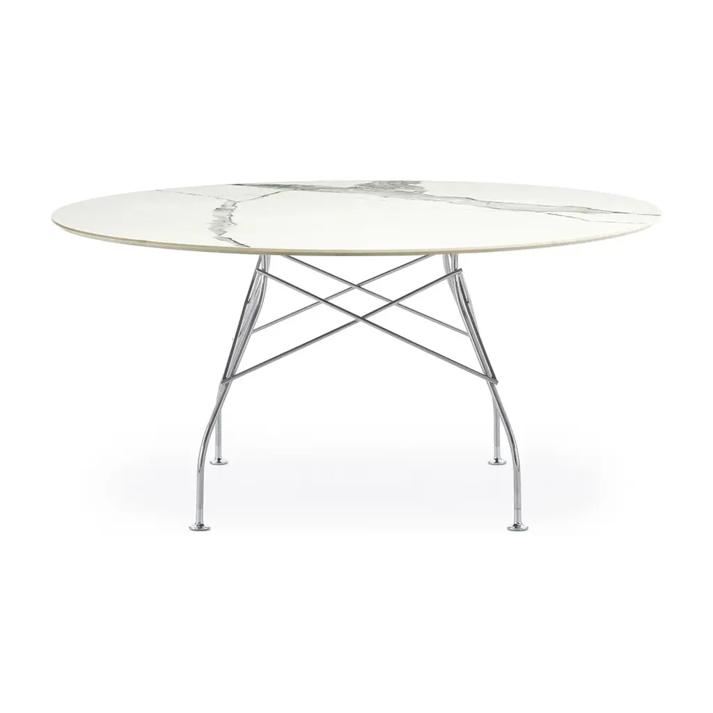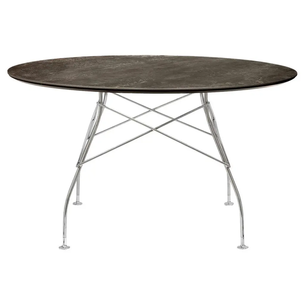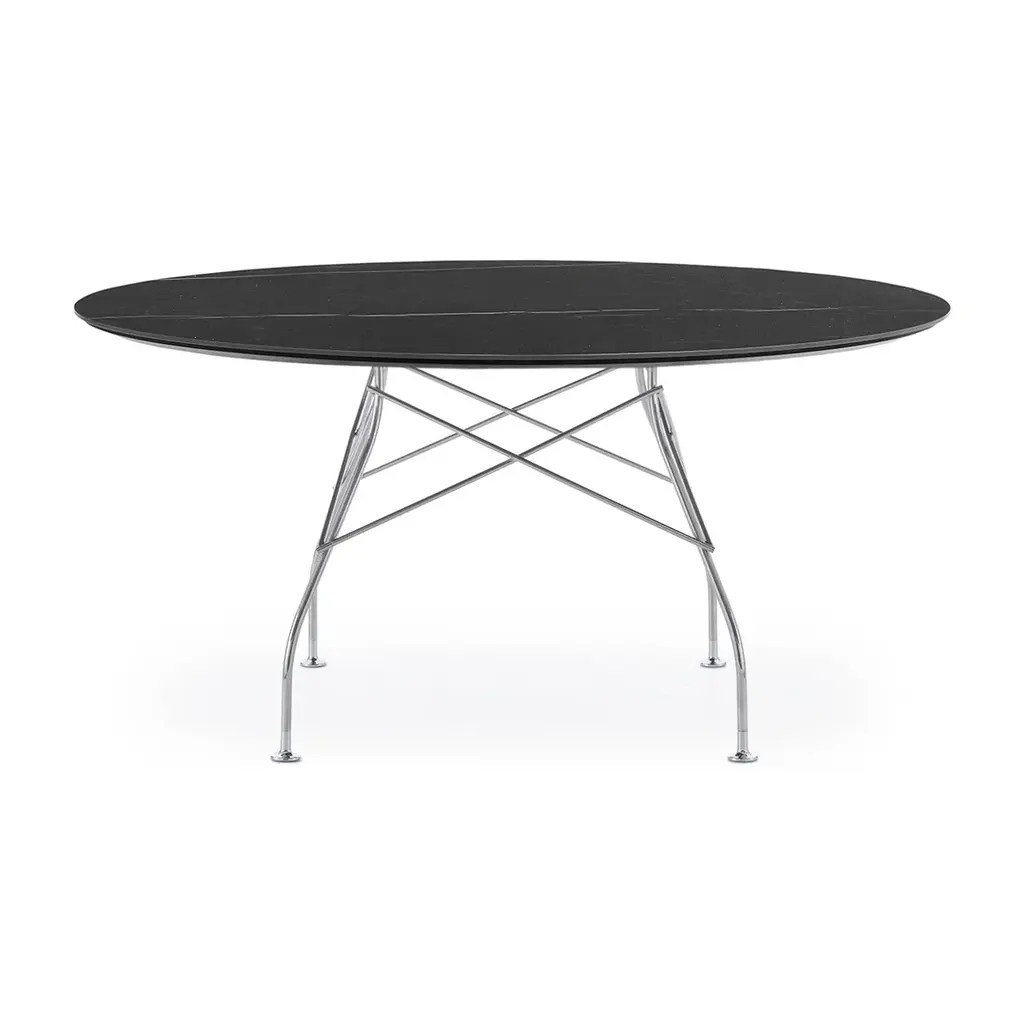 A family of tables ideal for the home and office. The light steel structure is made particular by the use of the cross element that joins the legs on each of the four sides, supporting the top. Features