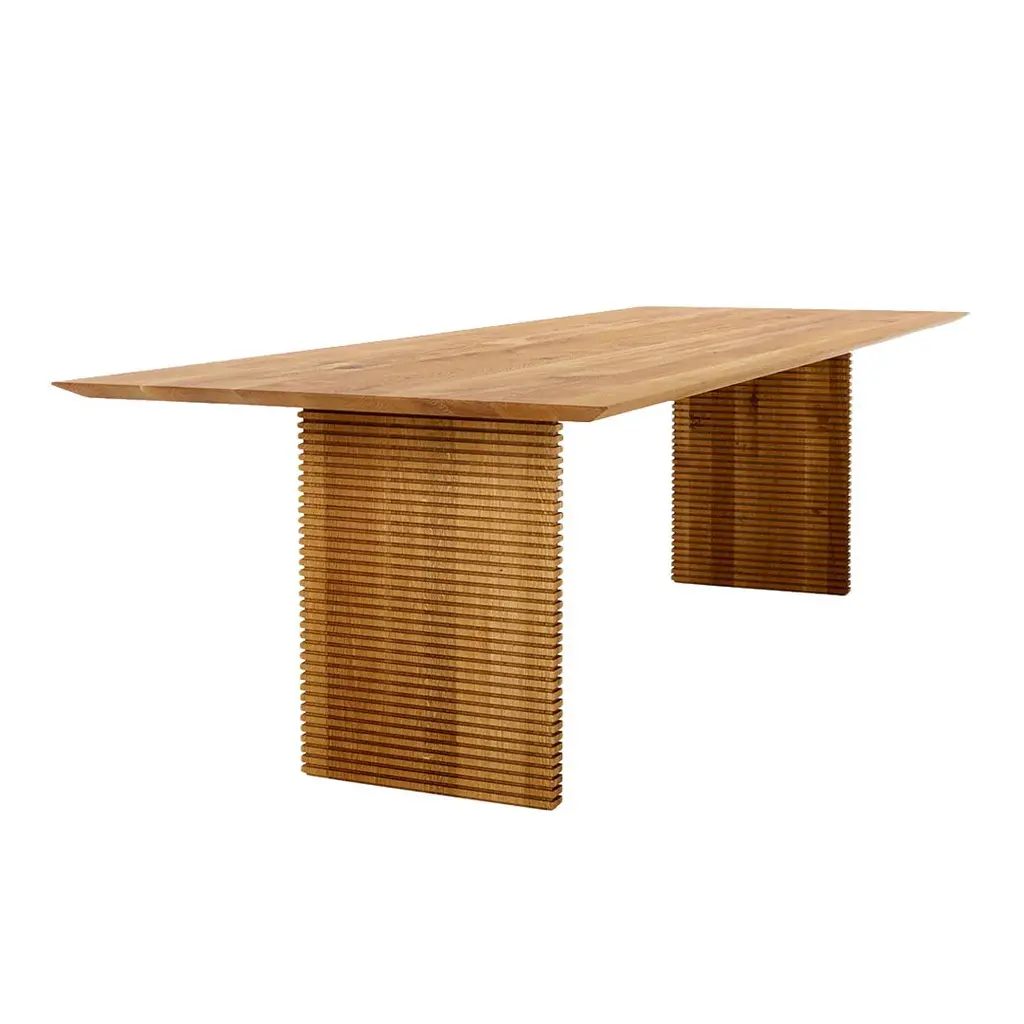 The large dining table is the central furniture in the modern residence. We produce a variety of tables designed to cover the needs in the family. Our newest dining table in solid wood: Straight, becomes the ideal place and center of the home. A table created for use in the highest quality. Added lightness with the beveled edge of the tabletop, and a sculptural table base in solid wood, the table will fit into the modern home. "Straight" is made with a solid table top in elm, wild oak, oak, ash or walnut. With hidden extensions poles at both ends, you can expand the table by 100 cm. The table base is placed in a way that allows room for seating all around the table.