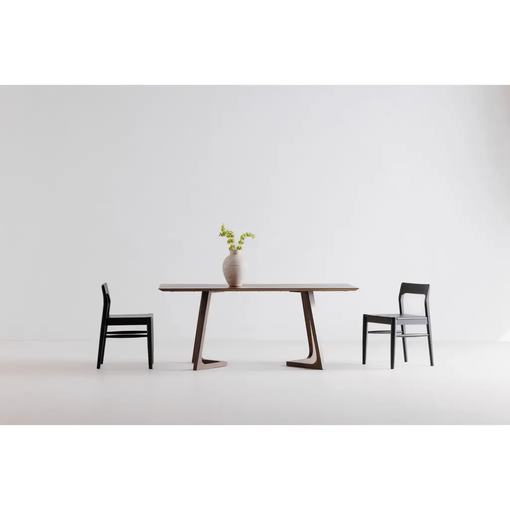 Made from solid American walnut, the Godenza Dining Table's mid-century modern design gives your dining room a subtle sophistication with its contemporary styled legs.