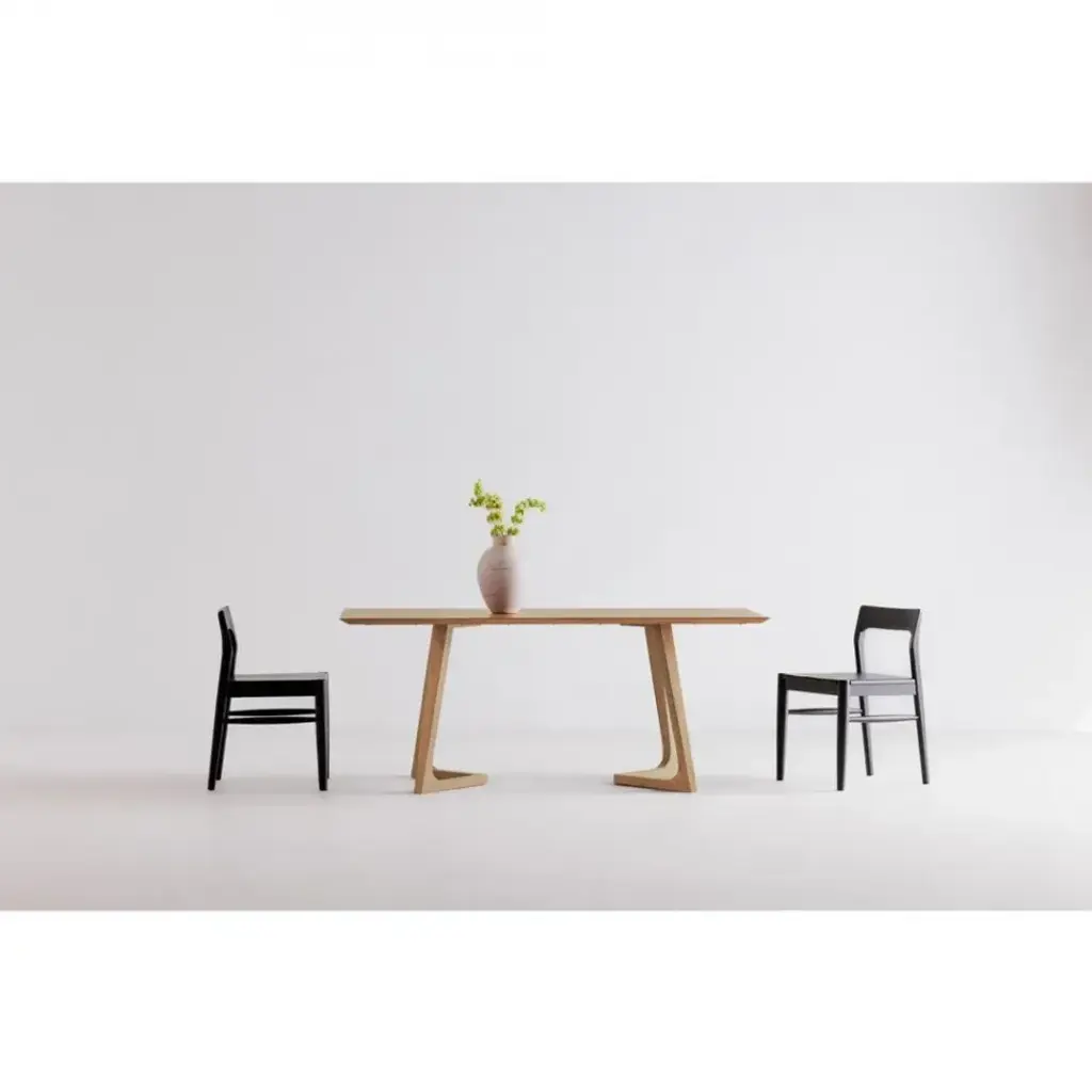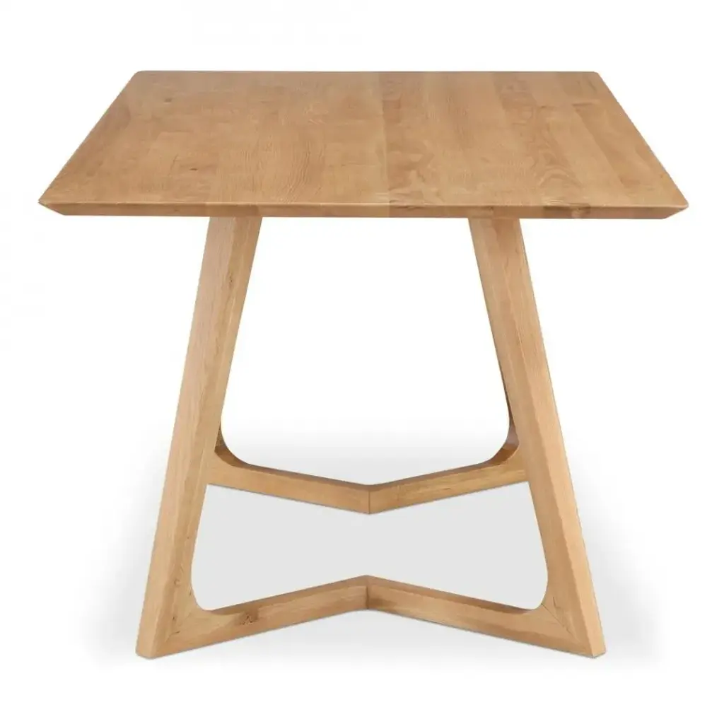 Made from solid oak, the Godenza Dining Table's mid-century modern design provides a subtle sophistication with its contemporary styled legs.