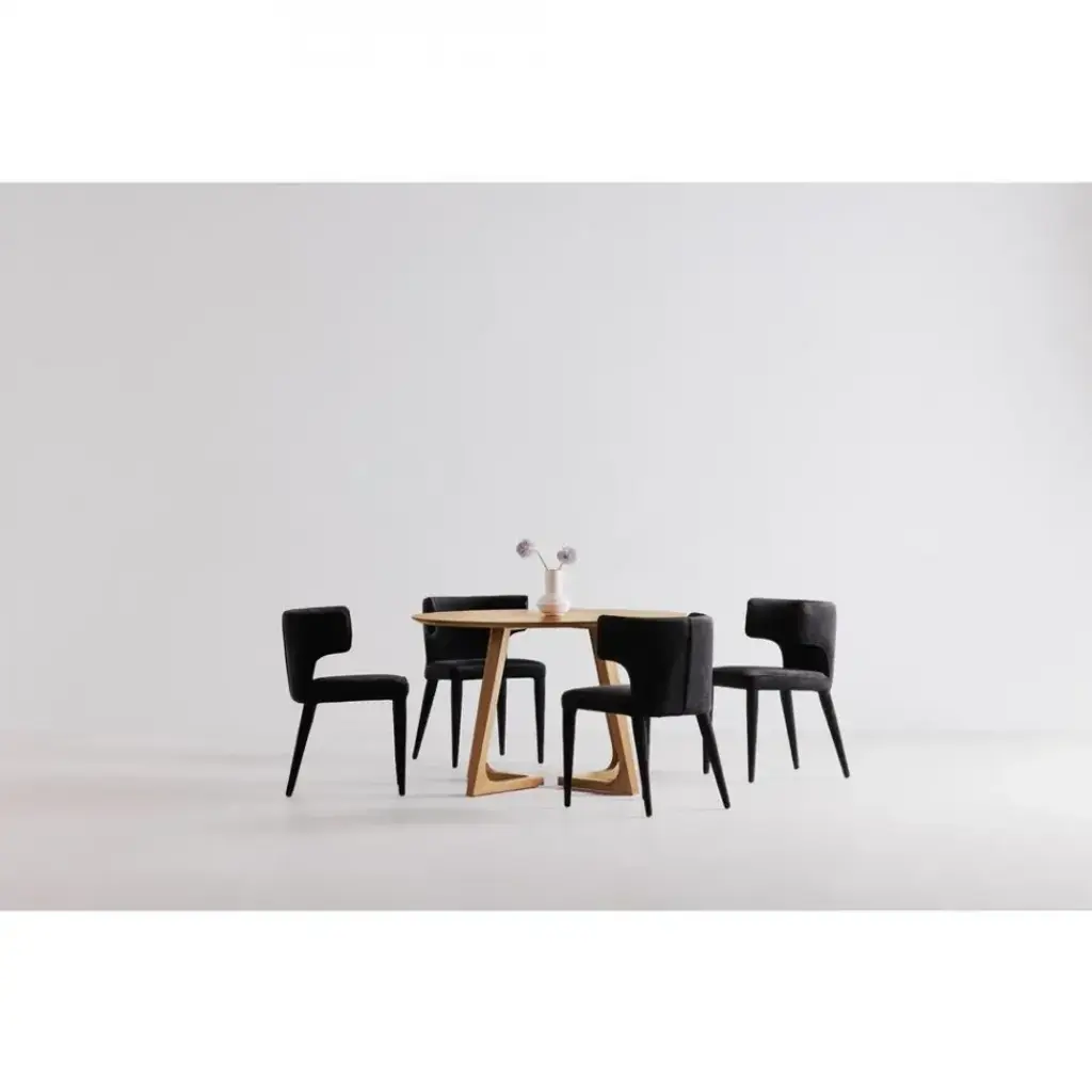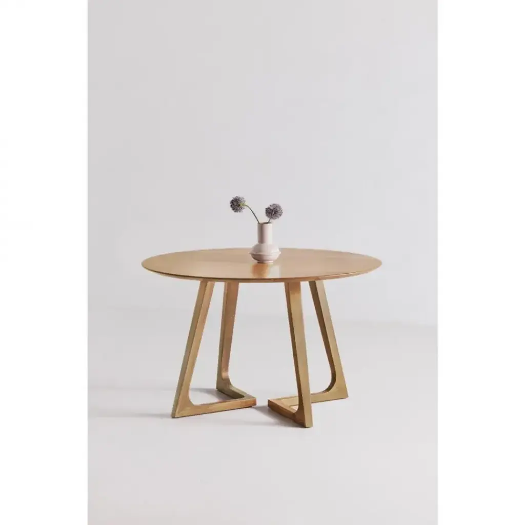 Made from solid oak, the Godenza Dining Table's mid-century modern design provides a subtle sophistication. Its round table design makes the most of smaller dining spaces.