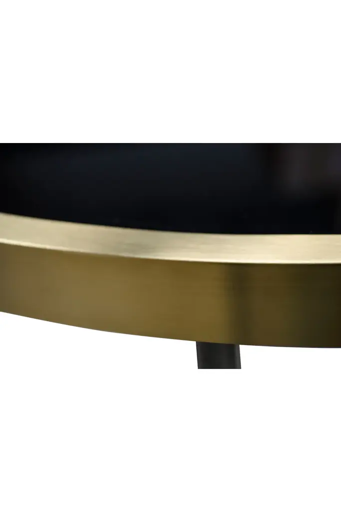 The Pigalle Dining Table by Versmissen creates a captivating centerpiece for any dining area that's sure to leave a lasting impression. Its oval black glass top, adorned with a delicate gold rim, radiates elegance and style. Supported by two sleek black poles on each side, artfully connected by a matching oval base at the bottom, this table offers both stability and a unique design aesthetic.