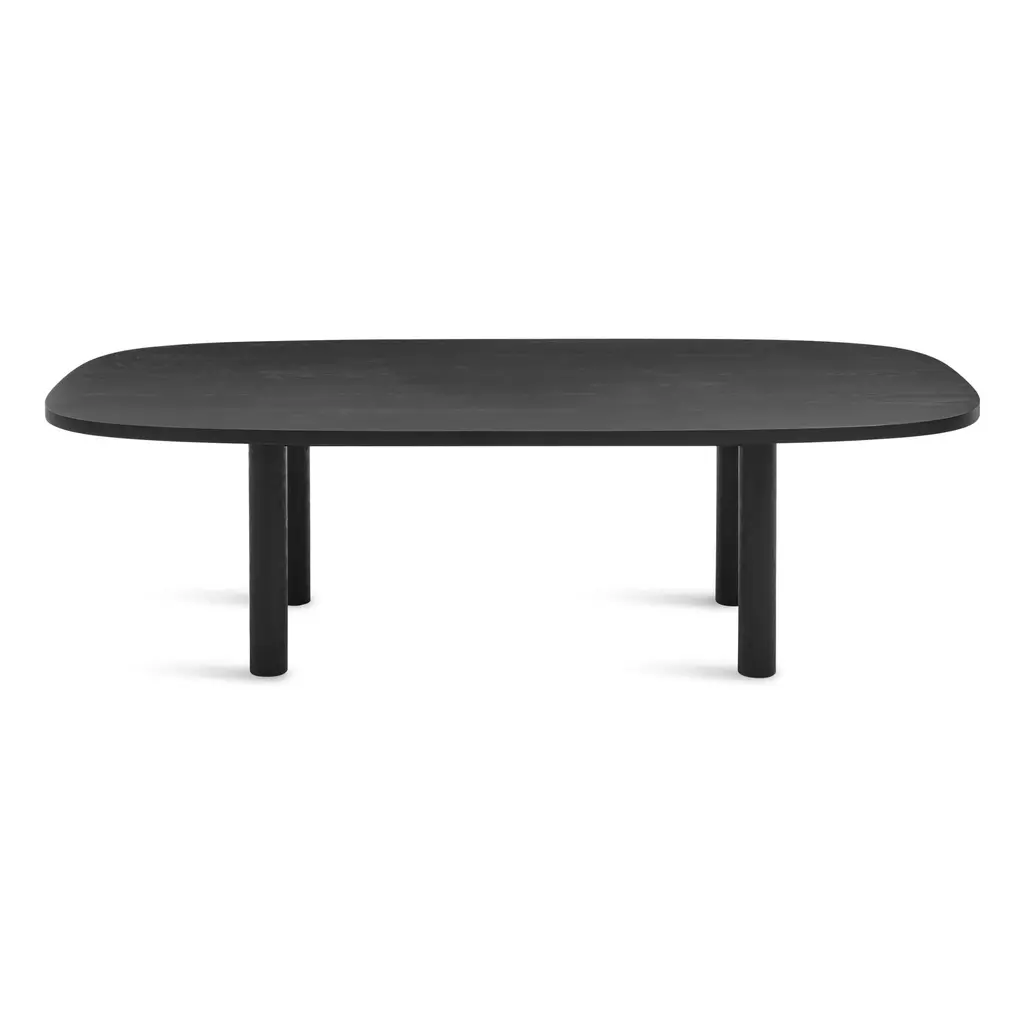 Micro this and mini that has a place, but Good Times is happy to buck the trend, assert its heft and take up some damn space. The capsule-shaped, thick wood top is fortified by generous, round wood legs. Walnut veneer over solid wood with a plant-based oil finish. Features