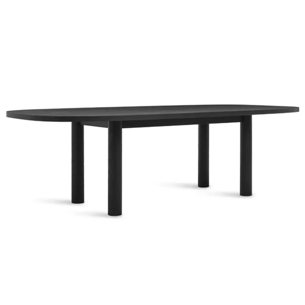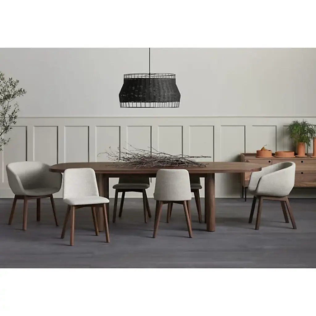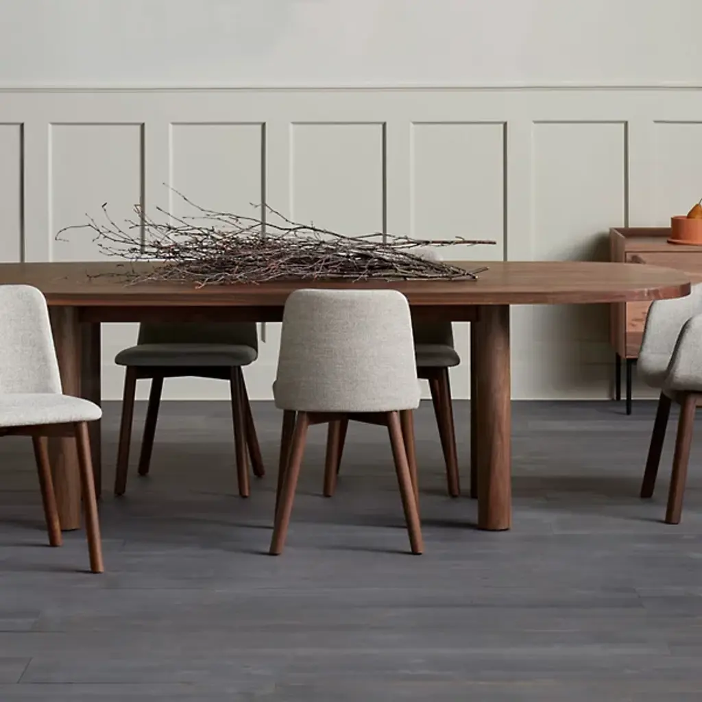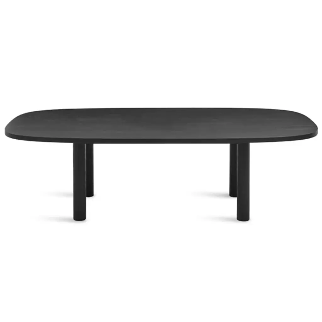 Gather friends and family around the Good Times Dining Table by Blue Dot. This hefty table will ground the look of a space with its robust, solid wood tabletop and legs. Extending widely to create enough room for everyone, its shape curves softly at the edges for a more inviting look. Its hard wax oil wood finished veneer offers just the right amount of sheen, while its simplistic styling makes it adaptable enough for just about any dining room décor.