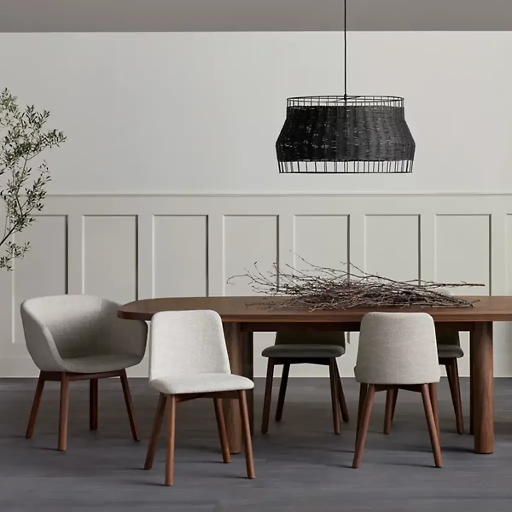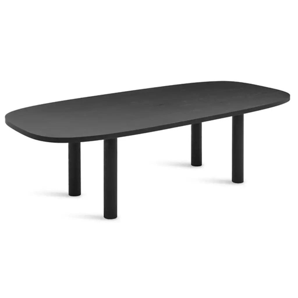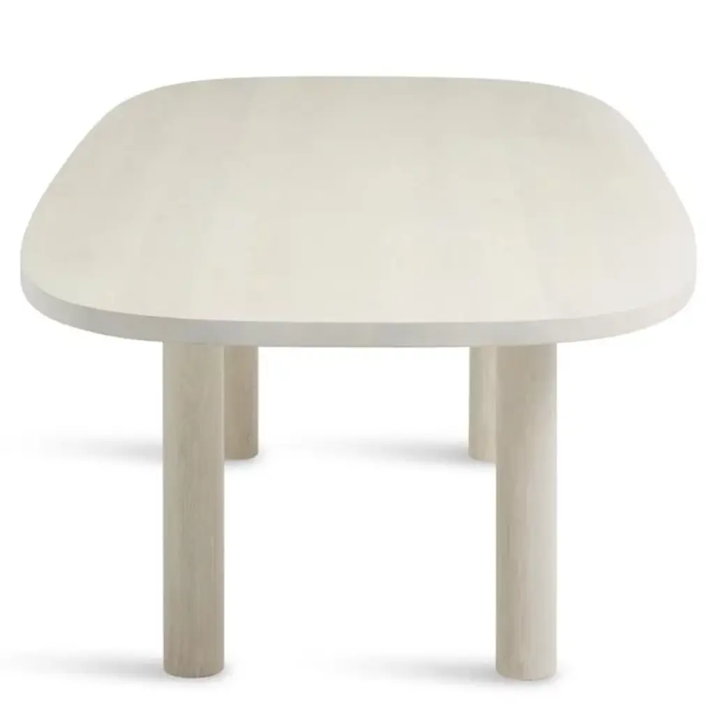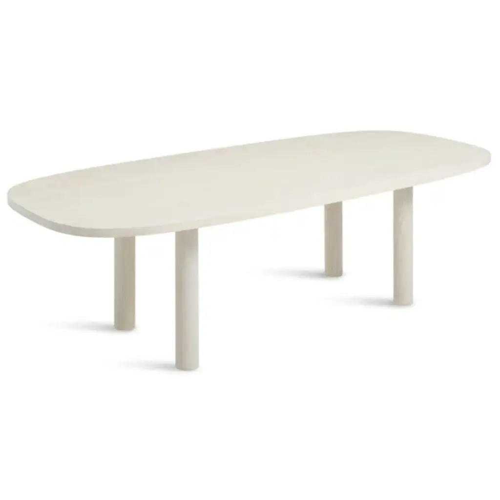 Gather friends and family around the Good Times Dining Table by Blue Dot. This hefty table will ground the look of a space with its robust, solid wood tabletop and legs. Extending widely to create enough room for everyone, its shape curves softly at the edges for a more inviting look. Its hard wax oil wood finished veneer offers just the right amount of sheen, while its simplistic styling makes it adaptable enough for just about any dining room décor.
