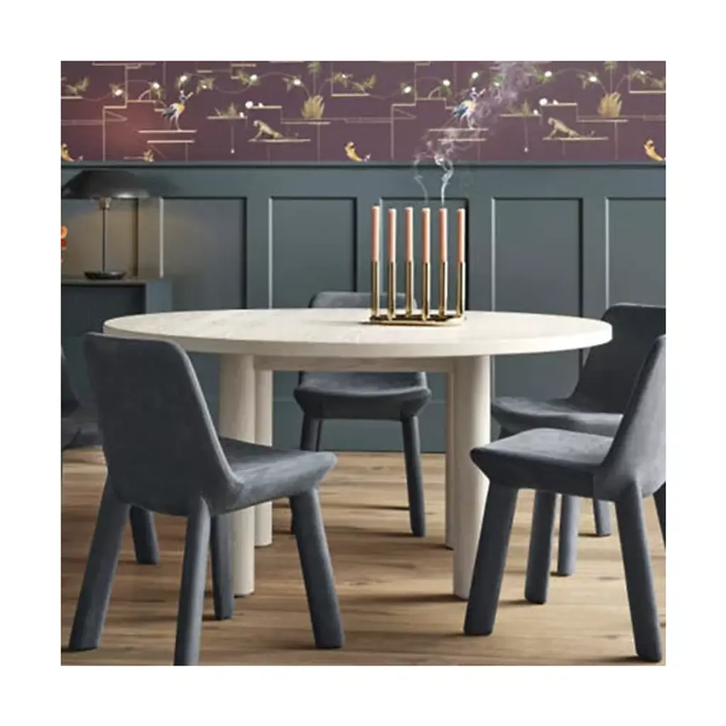 Get the good times rolling with the communal design of the Good Times Round Dining Table from Blu Dot. It’s easy to fall in love with the versatility of the table’s strict geometry. It pairs up a wood core with a veneer for durability and earthy accenting. The combo of the trim legs and spacious tabletop creates a regal silhouette that makes an impression. The tabletop pleases guests with a comfortable curve all around. The circular outline of the tabletop unites with plenty of surface area for an intimate dinner party.