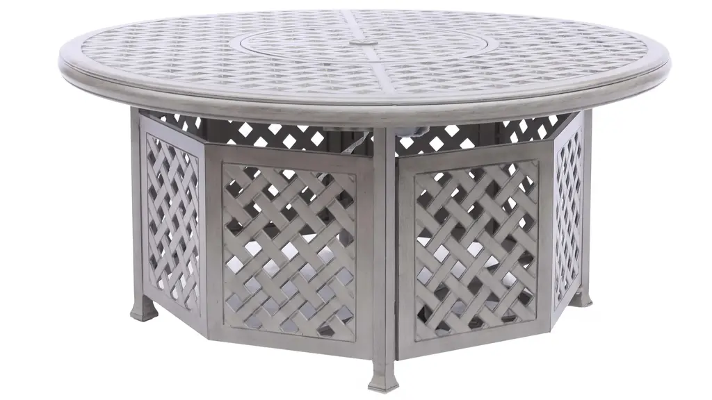 **Please refer to secondary images for finish and fabric colors**Elegant, sophisticated and beautiful, the Grand Terrace table collection has it all. These tables offer a wide variety of choices in size and seating height, are constructed using 100% cast Aluminum, and will last a lifetime. The Grand Terrace tables design works very well with Gensun's Bel Air seating collection.