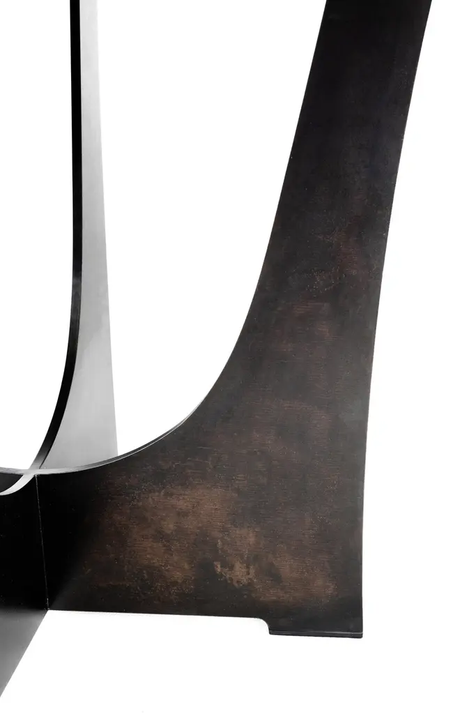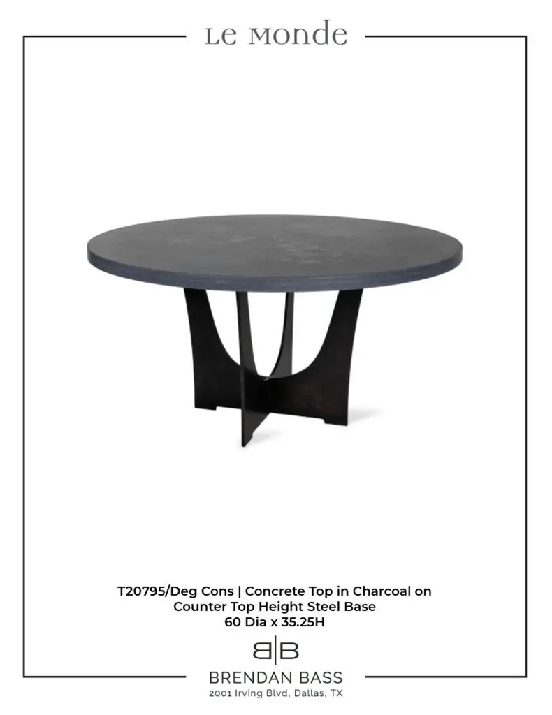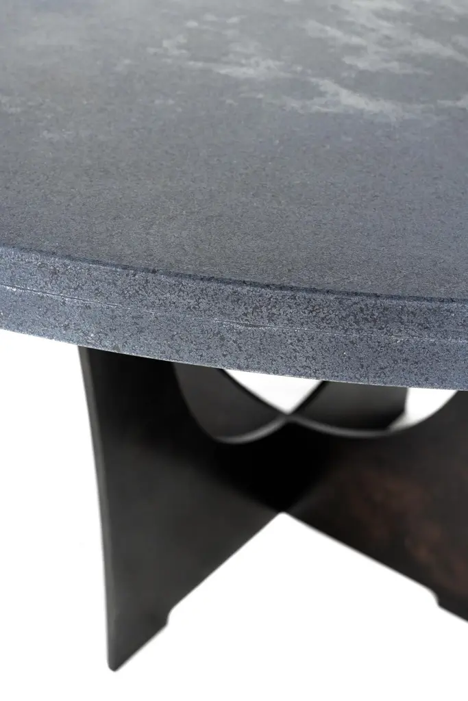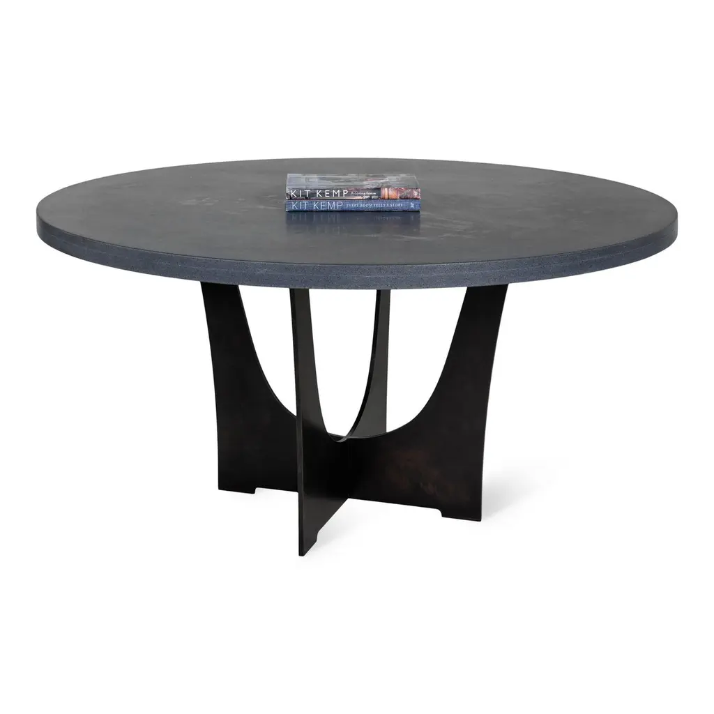 Sleek, industrial style dining table with honed granite top on custom black steel base.Designed by Brendan Bass for the Vision and Design Collection, by using high quality materials and textures. All materials are sourced from local vendors throughout the state of Texas. The sleek, flowing lines exude a clean, contemporary look that is perfect for today's living spaces. Hand-crafted by Brendan’s select team of highly experienced Artisans, all located in Dallas. Each craftsperson leaves their own unique touch on each piece, making a truly one-of-a-kind piece of art.The Vision and Design experience is hands-on from the beginning. Clients have the ability to adjust all shapes, sizing, and dimensions. Coloring and finish can be customized as well from our deep selection of unique and eye-catching samples. Ranging from high quality stones, water-stained wood, and patinated metals.The price of the listing is representative of the exact piece pictured. If sizing, coloring, or other customization is changed please anticipate pricing to change accordingly. The current lead time for custom pieces is 10-12 weeks.This item is crafted from natural materials. Coloring and detailing may vary, adding to its uniqueness.