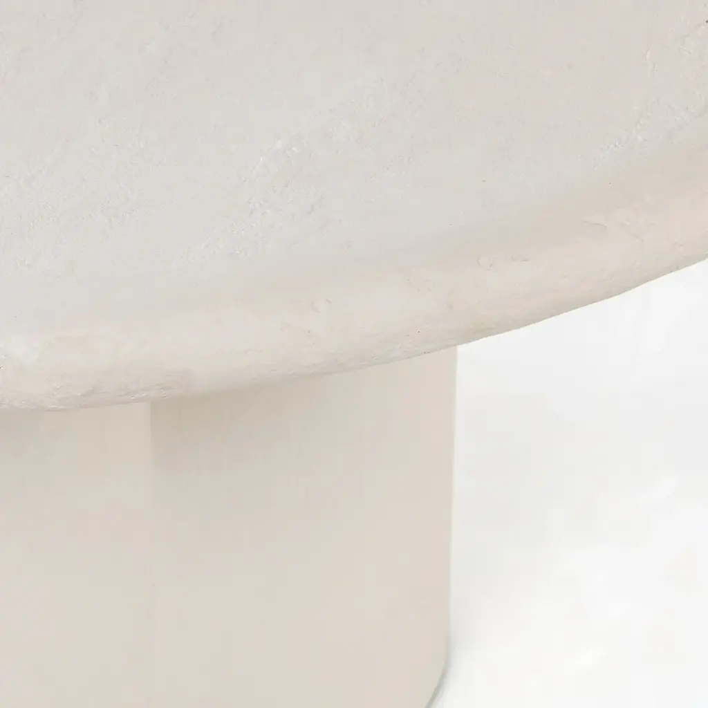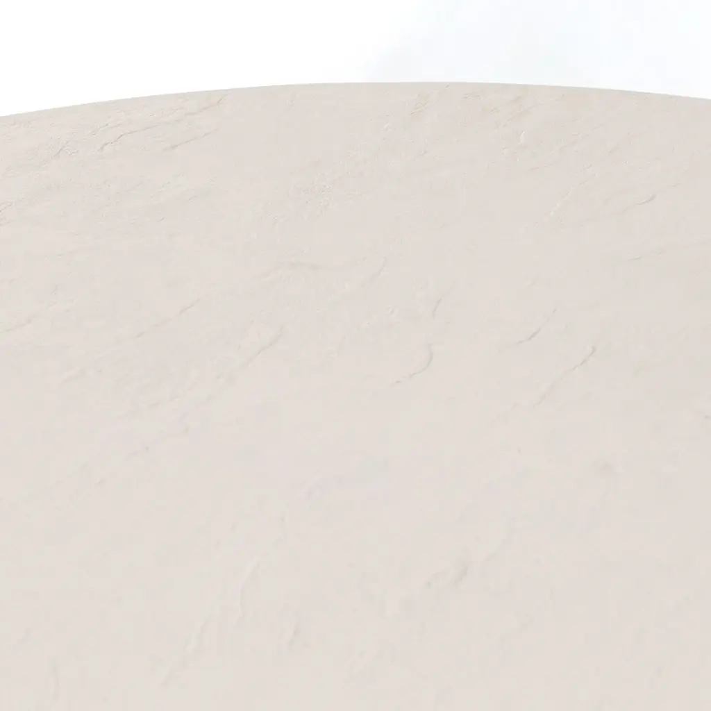 Adobe vibes. Made from white-finished concrete, a voluminous clover-shaped base supports a thick-rounded tabletop for dramatic scale. Soft yet textured look pairs with a wide range of seating, from natural woods to leather, and more. Ships In 10-14 Business Days Clover-shaped matching concrete base Round white finish concrete top This image is for illustrative purposes only. The colors shown are accurate within the constraints of lighting, photography, and the color accuracy of your screen.