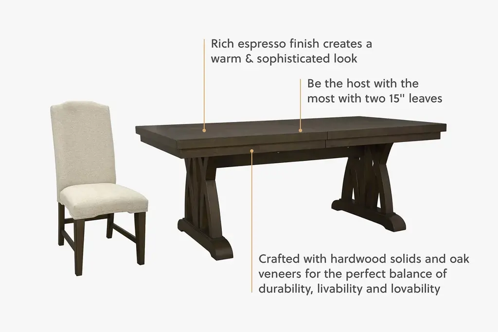 The heart of your entertaining space is your dining table, and that is why we designed our Grant Park table to set a casual, welcoming tone for your dinner parties, Sunday brunches, family game nights and so much more. A rich espresso finish completes the look.