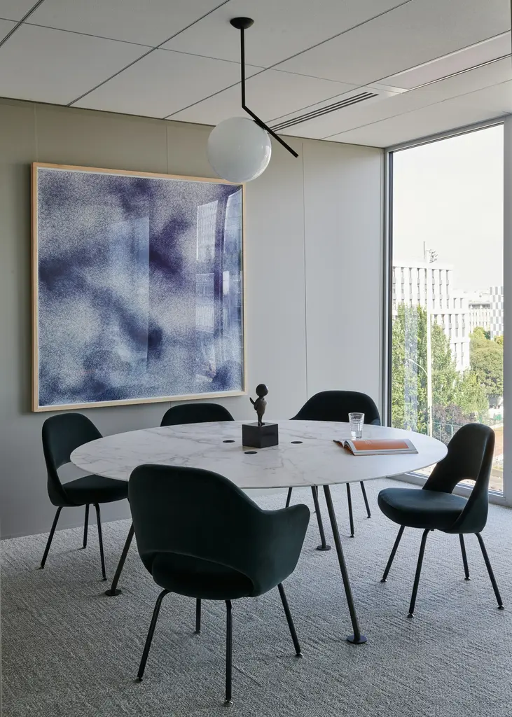 The elegance of the Grasshopper table is derived from its distinct combination of slender surfaces in soft organic forms and a high-performance steel structure. The tabletop’s thin edge evokes a feeling of weightlessness and adds an equally refined touch to the home or office.