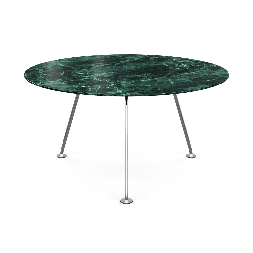 Conceived by Italian architect and designer Piero Lissoni, the Grasshopper Table (2018) marries slender surfaces with thin high-performance steel. Its lightweight appearance, inspired by the grasshopper's anatomy, elevates any home or office. Available in two marble finishes and round and rectangular shapes in a variety of sizes. Made in Italy.