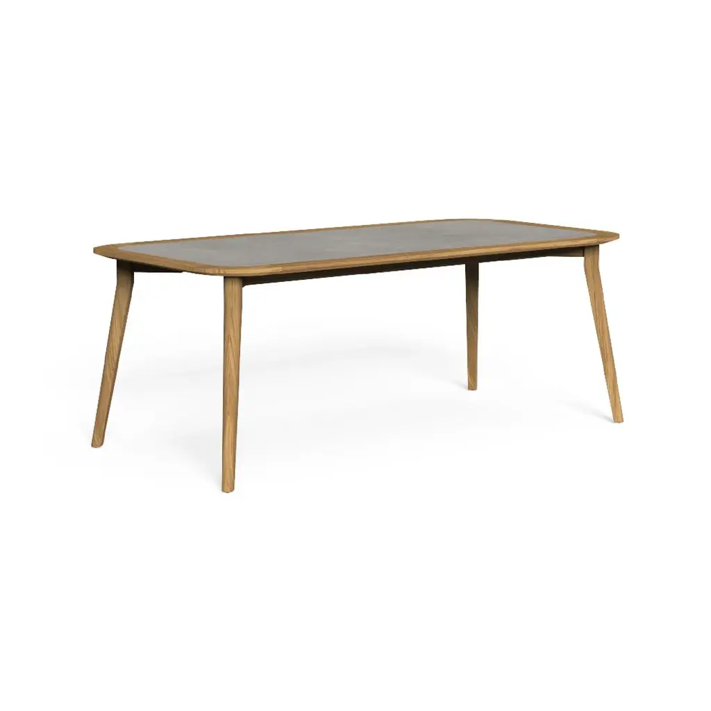 Indulge in outdoor dining with style and sophistication. The Moon dining table features a natural teak structure and perimeter, perfectly complemented by a sleek gray HPL top. Designed to bring the comforts of indoor living to your outdoor space, this table exudes luxury and refinement.