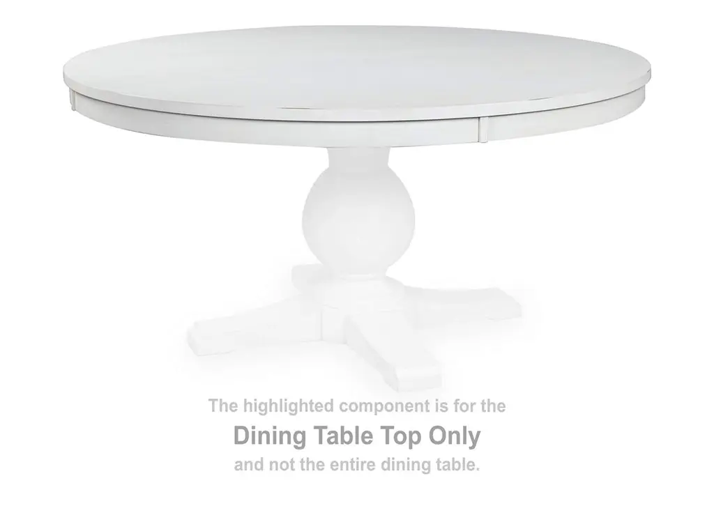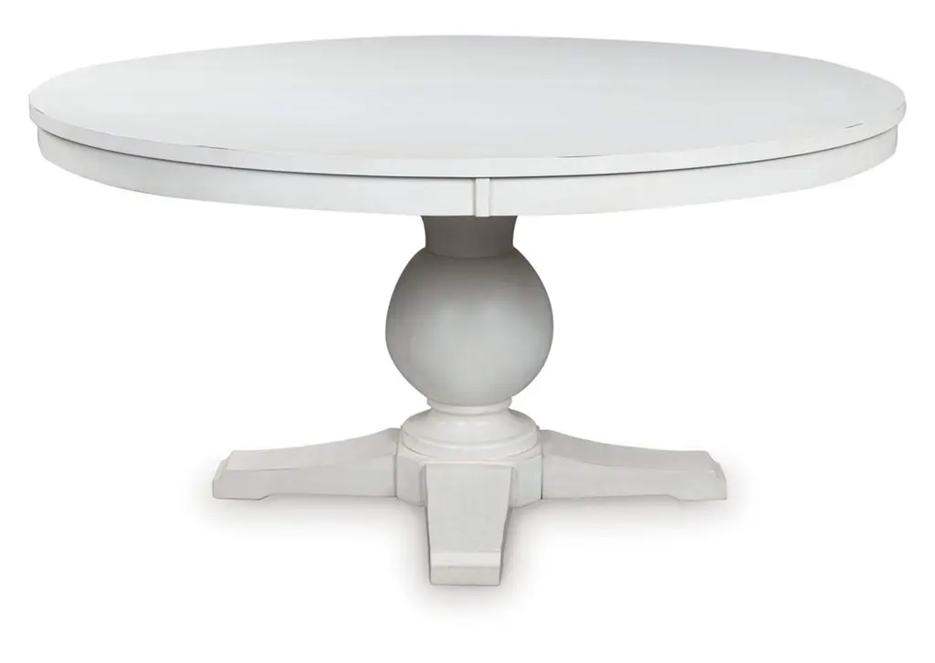 Relaxed living and cozy comfort—that’s what traditional farmhouse design is all about. And what better way to embrace your love of rustic country style than with the Chadworth dining table. Celebrating the beauty of simplicity, its thick antiqued white top and hearty pedestal base marry functionality with classic appeal for a fresh feel. This piece effortlessly pairs with assorted chairs in the collection for an eclectic look. Weight 93.330 lbs. (42kgs.)