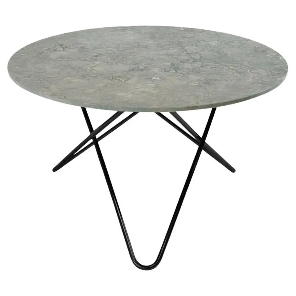 Grey marble and black steel large dining O table by OxDenmarqDimensions: D 100 x H 72 cmMaterials: Steel, Grey MarbleAlso Available: Different marble and frame options available.OX DENMARQ is a Danish design brand aspiring to make beautiful handmade furniture, accessories and lighting in natural high-quality materials in fair prices. " When we set out back in 2003, we were primarily working with vegetable-tanned saddle leather thus the name OX was a tribute to our unique leather and the animal providing it.The other half of our name, DENMARQ, is chosen to emphasize that we are a Danish design brand based on the Danish design tradition and that most of our furniture is produced in Denmark. However, DENMARQ not only refers to our home country, but also to the co-founder and designer - DENnis MARQuart.Before finishing his design studies at the Copenhagen Design University, Dennis Marquart did a Blacksmith education. This background is extremely useful when developing and designing products."OX DENMARQ handmade products will only get more beautiful as time passes and natural patina sets in.Many OX products are shaped around marble or vegetable-tanned saddle leather. Stone and leather are materials that will, and should, get marks over time. But they will also age with a very special beauty. When you learn to appreciate the beauty of maturity and of time passing, you have learned to appreciate patina the way it should be appreciated.