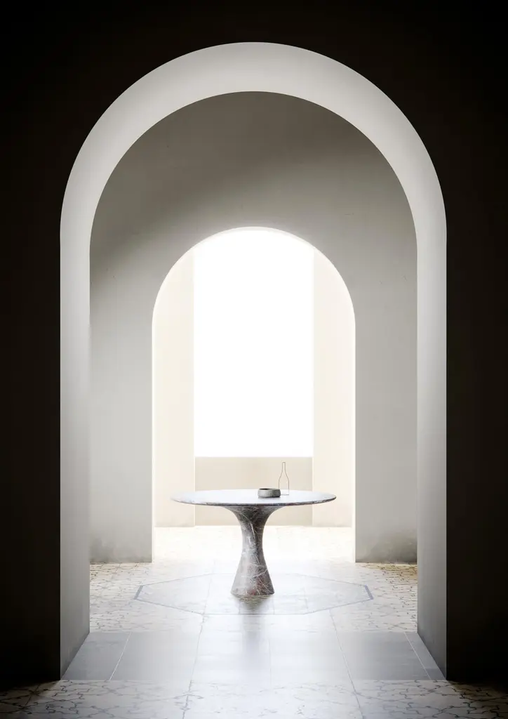 Grey Saint Laurent refined contemporary marble dining table 160/75Angelo is the essence of a round table in natural stone, a sculptural shape in robust material with elegant lines and refined finishes.The collection consists of a round/oval dining or conference table, side tables and lower tables.Suitable for both indoor and outdoor use!All tables are made by order and finished by hand to be sure that the table top and base become one pieceThe basic collection consists of 9 different marbles and different standard dimensions, however on request we make to measure.Almost any size or marble is possible!All tables are signed and numbered (the low and side tables are only signed).All tables are impregnated with Lithofin Nanotop. This protection is not visible and the marble keeps its natural look and feel. With the delivery of every table, a maintenance set of Lithofin is included.The production time is standard 12 weeks.The design Angelo is the essence of a round or oval table in natural stone, it features a sculptural form, sturdy material, an elegant line and a refined finish. Two elements, table base and top, form one whole together. The bottom is one running curve from table foot to edge. The conical connection creates a stable whole.To show the marble in it’s most expressive character, different finishes are possible (polished, honed, brushed, striped, sandblasted & brushed). The basic collection consists of nine different types of marble and different sizes. On request this design can be executed in almost any type of marble and on measure. This table is perfectly suitable in a housing, retail or office environment. As the table is supported by one central foot it creates a lot of flexibility in seating. Executed in hard variations of natural stone suited for external use, this design can be a perfect garden table or sculpture.Angelo M/R 130 : ø 130 x 75 cmAngelo M/R 160 : ø 160 x 75 cmAngelo M/R 180 : ø 180 x 75 cmAngelo M/O 210 : 210 x 135 x 75 cmAngelo M/O 250 : 250 x 160 x 75 cmAngelo M/O 290 : 290 x 160 x 75 cm The basic collection is available in the following marbles: Kyknos, Grafite, Travertino Rosso, Grey Saint Laurent, Picasso Green, Port Saint Laurent, Travertino Silver, Rosso Lepanto and Bianco Statuarietto in a honed finish. On request different sizes, finishes and marbles are possible. AwardsGood Design Award – Chicago, USA (2018)People’s Choice, AZ Award – Toronto, Canada (2019)German Design Award – Frankfurt, Germany (2020).