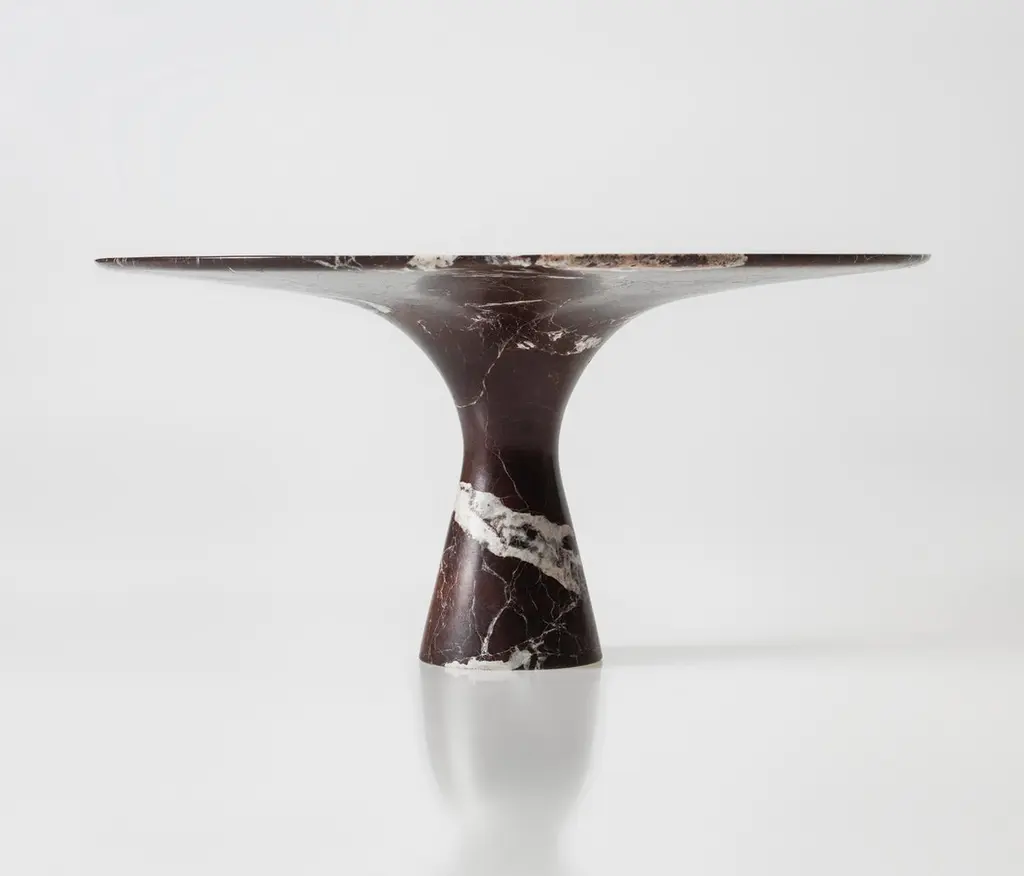 Grey Saint Laurent Refined Contemporary marble dining table 180/75Dimensions: 180 x 75 cmMaterials: grey Saint LaurentAngelo is the essence of a round table in natural stone, a sculptural shape in robust material with elegant lines and refined finishes.The collection consists of a round/oval dining or conference table, side tables and lower tables.Suitable for both indoor and outdoor use!All tables are made by order and finished by hand to be sure that the tabletop and base become one pieceThe basic collection consists of 9 different marbles and different standard dimensions, however on request we make to measure.Almost any size or marble is possible!All tables are signed and numbered (the low and side tables are only signed).All tables are impregnated with Lithofin Nanotop. This protection is not visible and the marble keeps its natural look and feel. With the delivery of every table, a maintenance set of Lithofin is included.The production time is standard 12 weeks.The design Angelo is the essence of a round or oval table in natural stone, it features a sculptural form, sturdy material, an elegant line and a refined finish. Two elements, table base and top, form one whole together. The bottom is one running curve from table foot to edge. The conical connection creates a stabile whole.To show the marble in it’s most expressive character, different finishes are possible (polished, honed, brushed, striped, sandblasted & brushed). The basic collection consists of nine different types of marble and different sizes. On request this design can be executed in almost any type of marble and on measure. This table is perfectly suitable in a housing, retail or office environment. As the table is supported by one central foot it creates a lot of flexibility in seating. Executed in hard variations of natural stone suited for external use, this design can be a perfect garden table or sculpture.Angelo M/R 130 : ø 130 x 75 cmAngelo M/R 160 : ø 160 x 75 cmAngelo M/R 180 : ø 180 x 75 cmAngelo M/O 210 : 210 x 135 x 75 cmAngelo M/O 250 : 250 x 160 x 75 cmAngelo M/O 290 : 290 x 160 x 75 cm The basic collection is available in the following marbles: Kyknos, Grafite, Travertino Rosso, grey saint Laurent, Picasso green, port saint Laurent, Travertino silver, Rosso Lepanto and Bianco Statuarietto in a honed finish. On request different sizes, finishes and marbles are possible. AwardsGood Design Award – Chicago, USA (2018)People’s Choice, AZ Award – Toronto, Canada (2019)German Design Award – Frankfurt, Germany (2020).