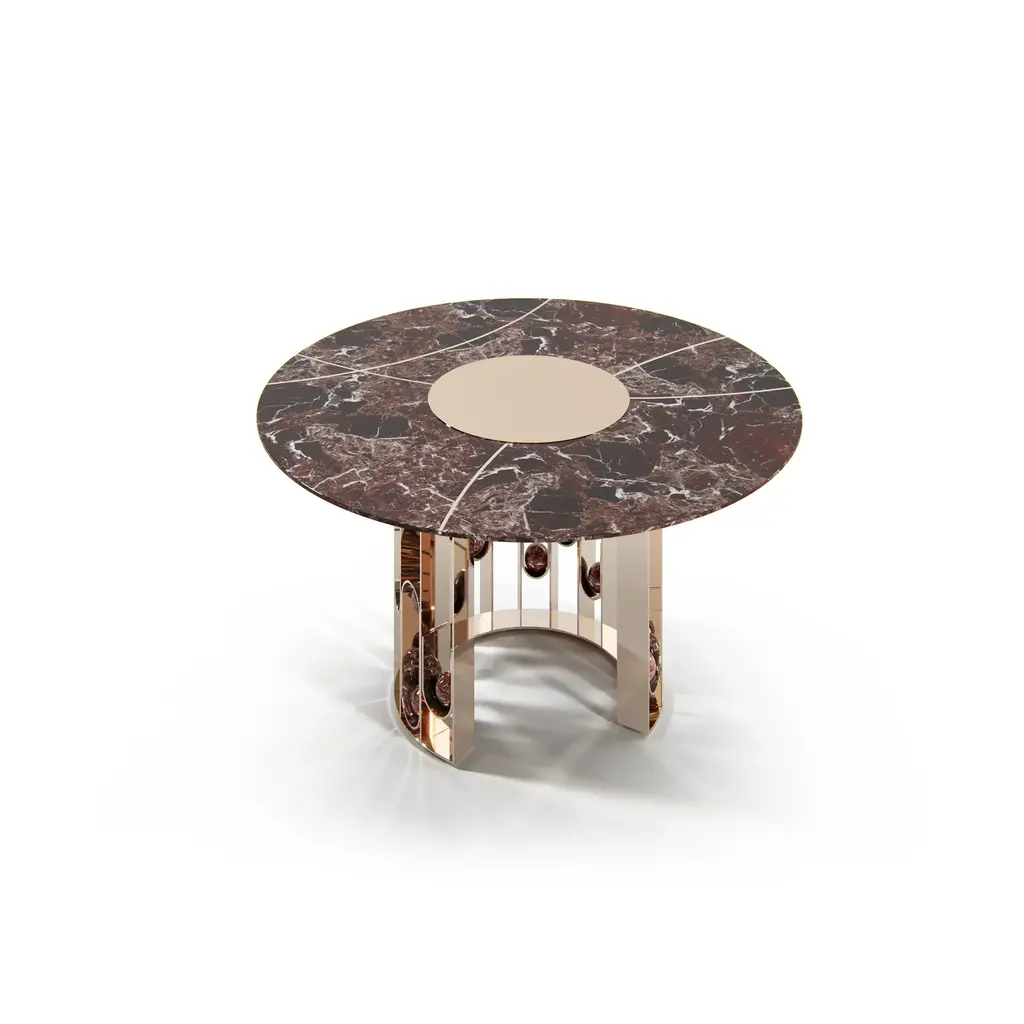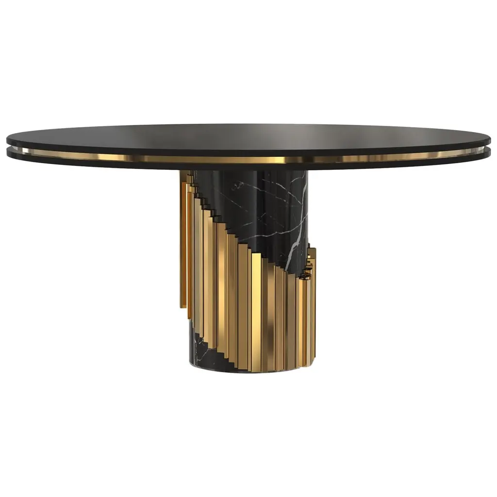 The elegant shape and fluid lines of Groove follows a completely out of the box aesthetic language. A dynamic and playful stainless-steel foot that creates the illusion of movement turns it in a differentiating dining table suitable to integrate any modern atmosphere. Groove has the ability to tell a story through the attention to every detail. Signed by Maker,Labeled by Maker