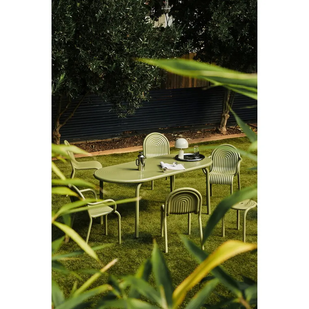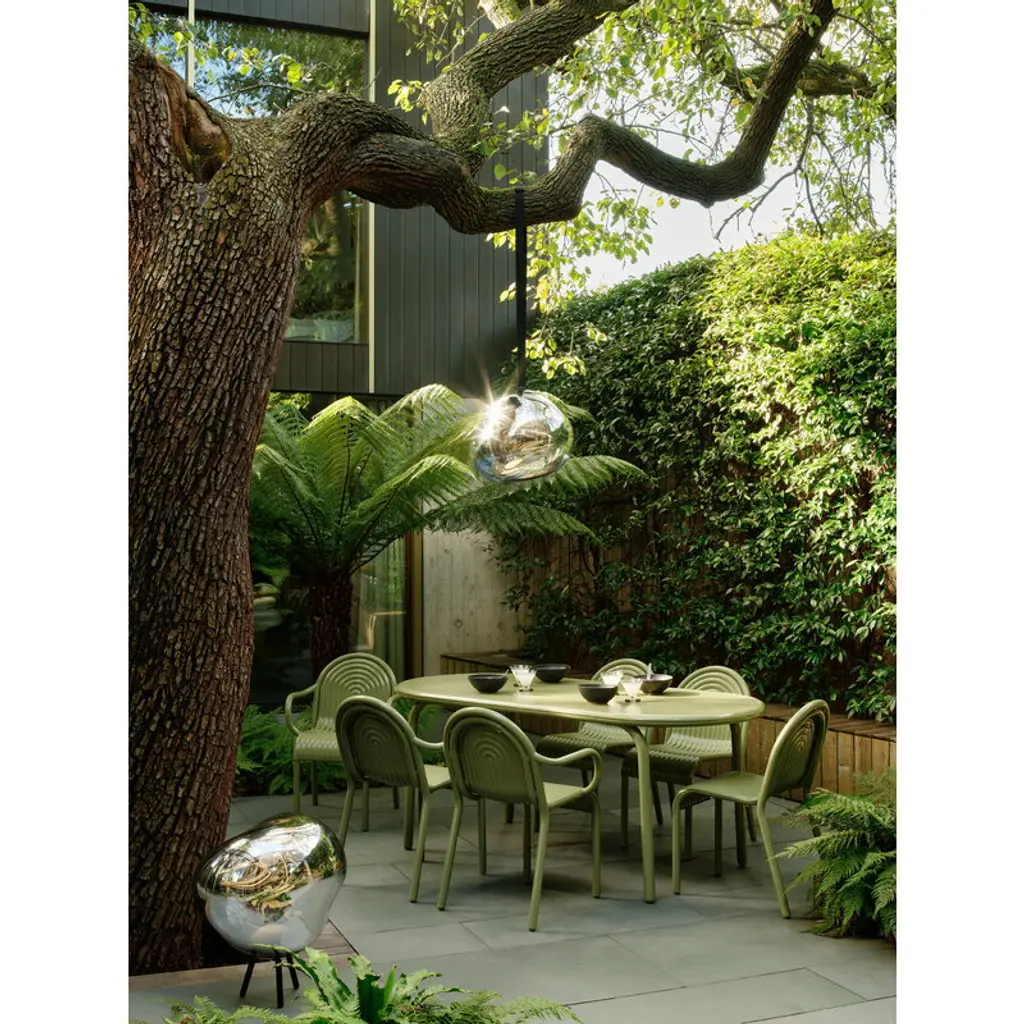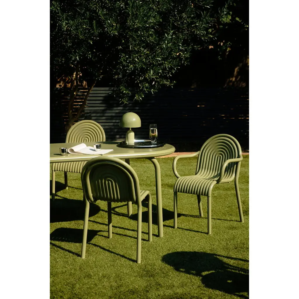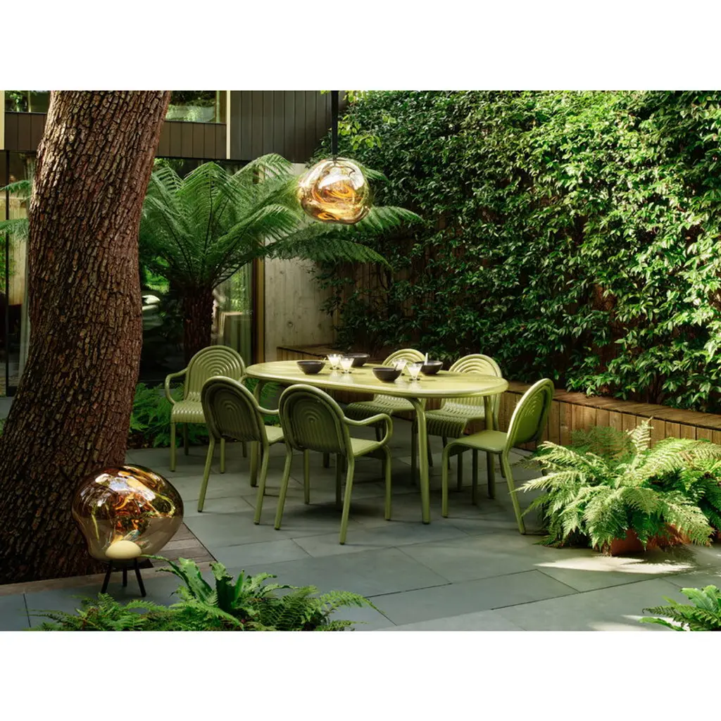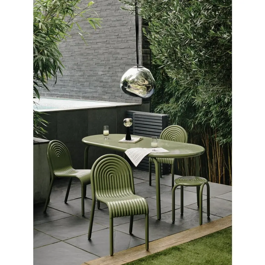 Tom Dixon’s Groove Obround table lives up to its name with its sleek curves and striking ridges that bring a bold rhythm to any outdoor space. The dining table is part of Tom Dixon’s first outdoor furniture collection which is the result of over ten years of design development. The glossy aluminum finish and Art Deco–inspired relief pattern make the Groove Obround table a standout piece that’s just as durable as it is eye-catching. Made from high-quality, corrosion-resistant aluminum and finished with a durable powder coating, the Groove furniture is designed to withstand the weather. And when summer’s over? The light table can be stored or brought inside, where its sculptural form makes a stylish addition to the dining room or kitchen.
