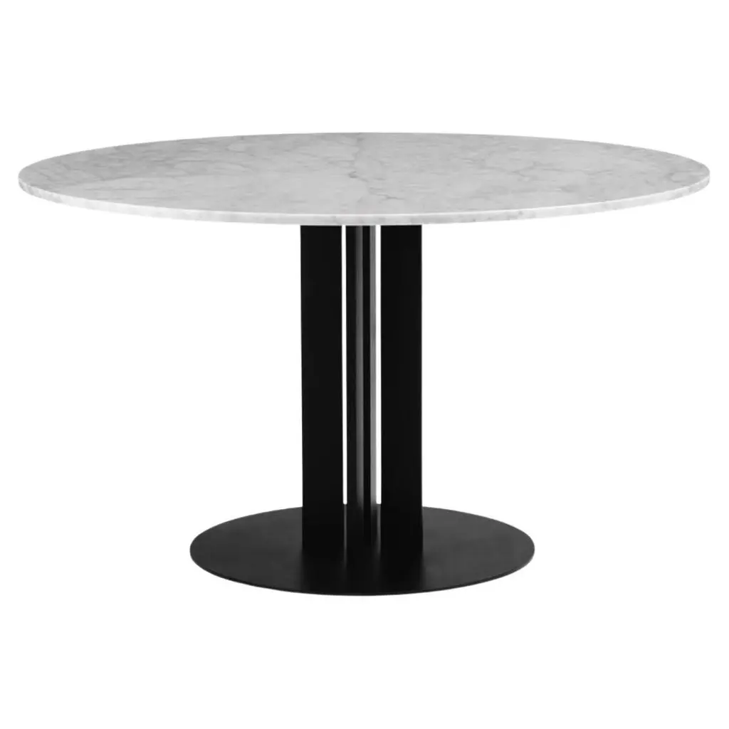 Designed with either a circular or elliptical top, the The Gubi 2.0 Dining Table fosters intimate gatherings, whether for dining, meetings, or casual socializing. The design team at Gubi drew inspiration from the concept of circles intersecting, resulting in a piece that emphasizes connection and fluidity. Its minimalist design, clean lines, and robust material options—ranging from luxurious marbles to warm wood finishes—offer a broad range of styling possibilities. Available in 3 sizes with base options of black or brass.