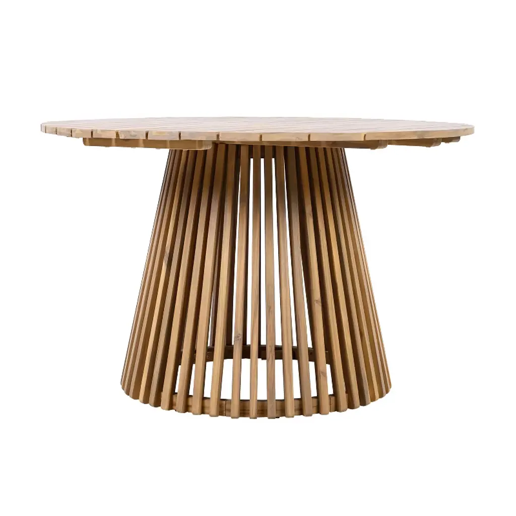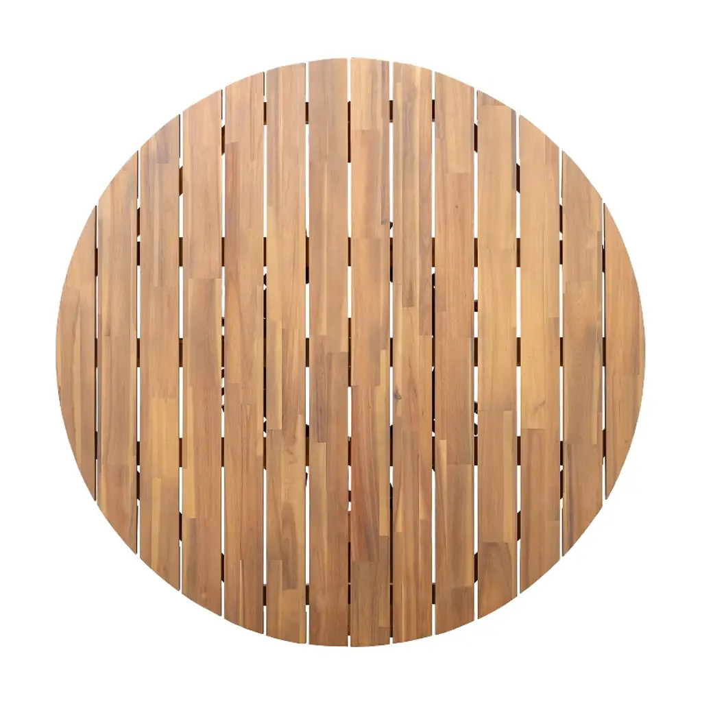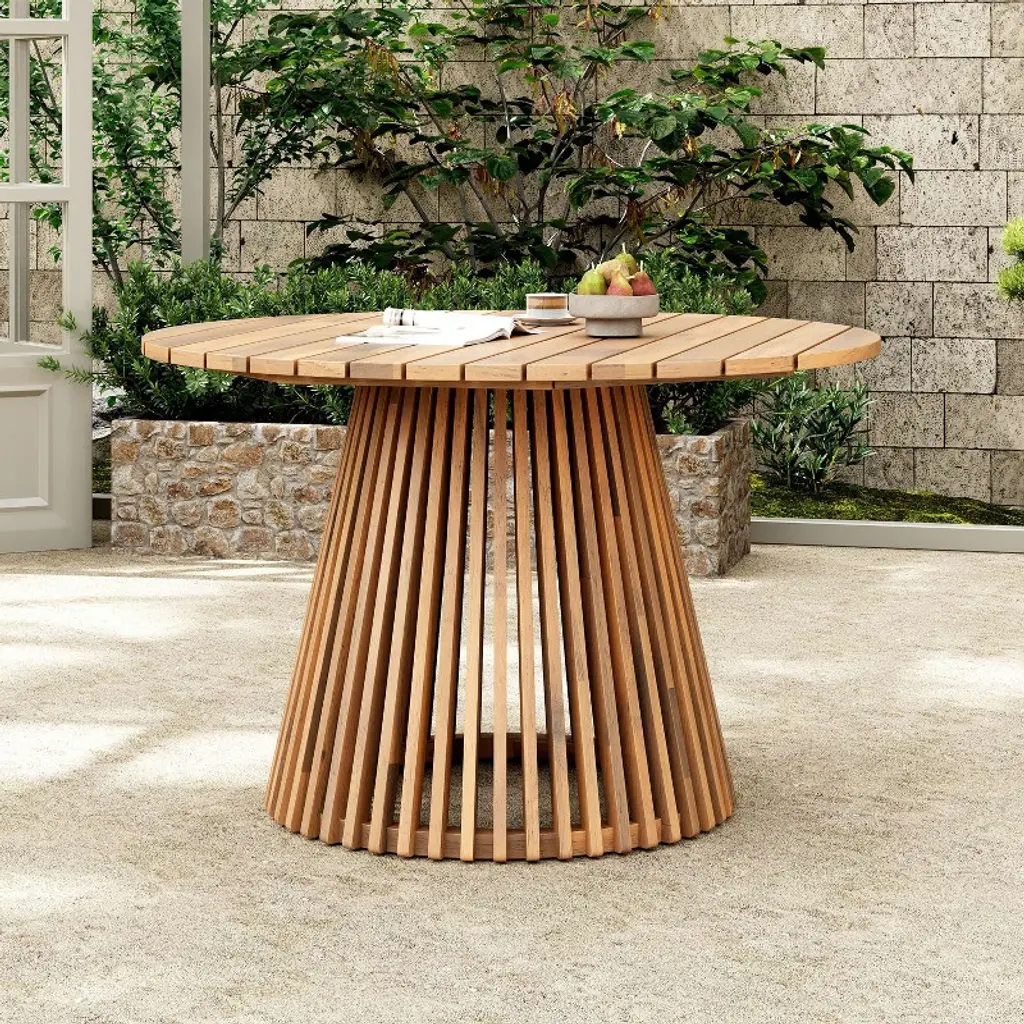 Gulches 47.25" Round Outdoor Dining Table: Premium acacia wood with a Light Teak finish, blending rustic charm and natural elegance. 47.25" diameter top (29.75" tall) offers ample space for meals; unique slat base ensures stability (300lbs capacity). Fits patios, gardens, poolsides. Easy to clean (damp cloth) and assemble with included hardware.