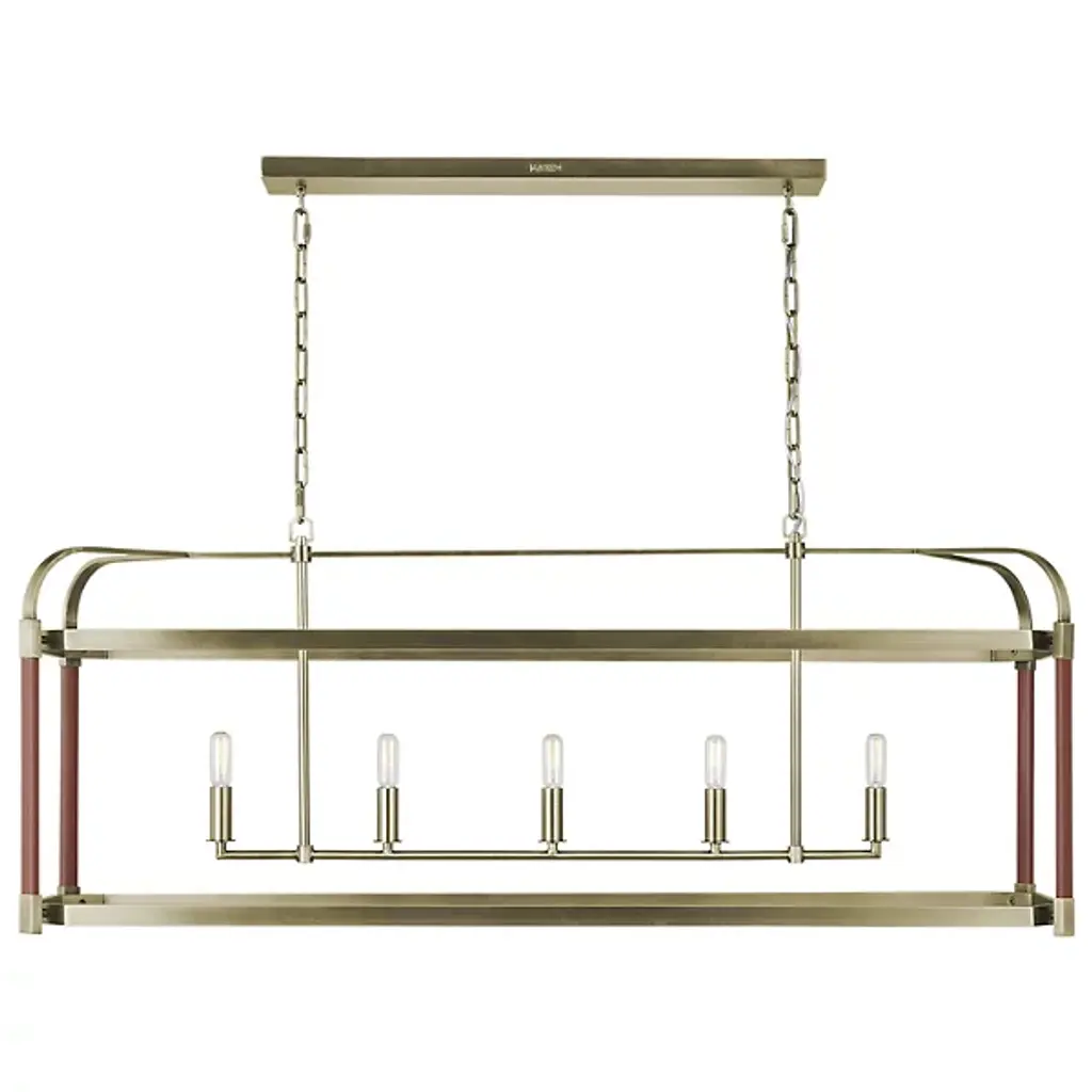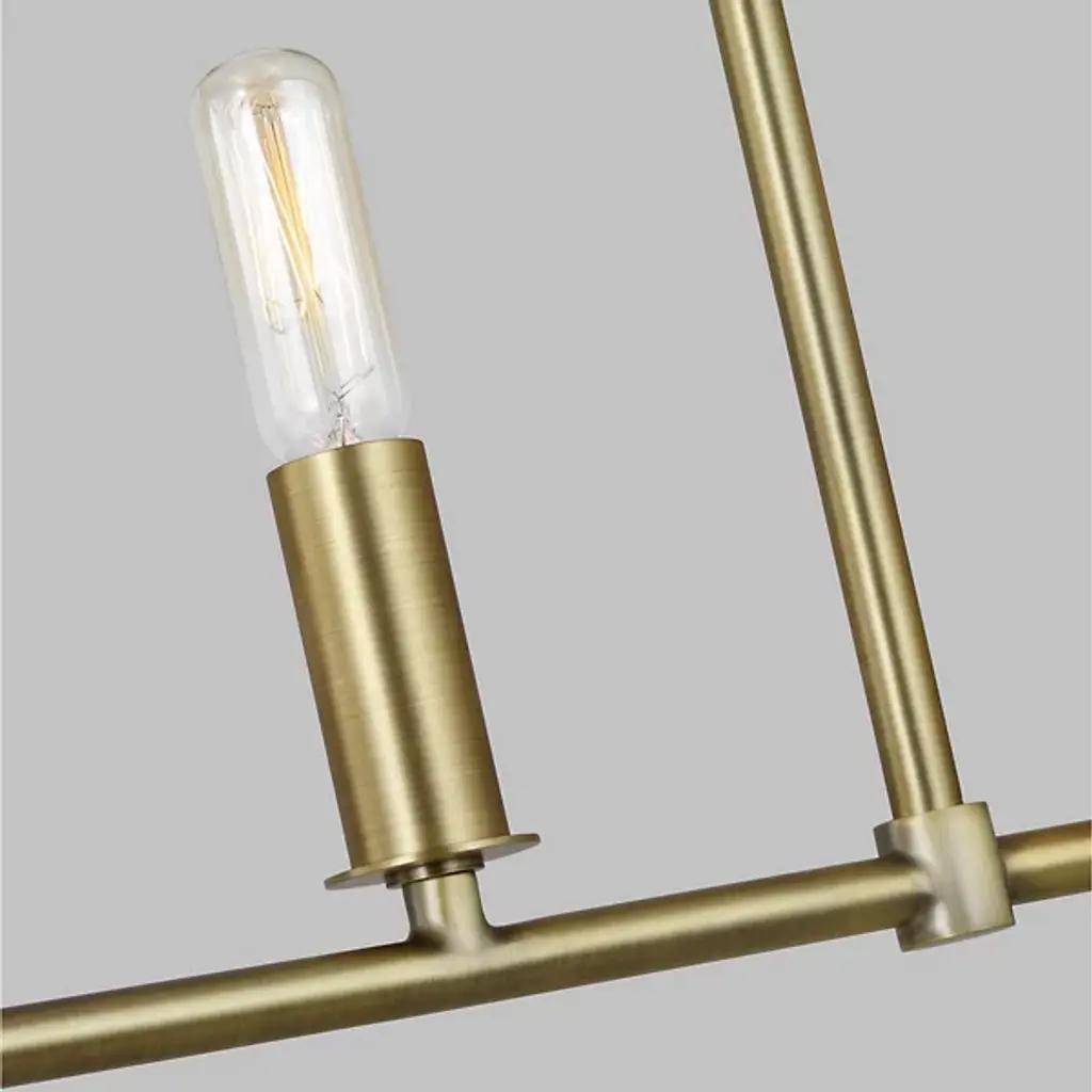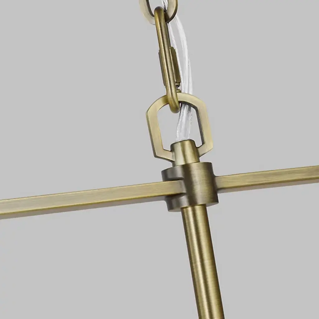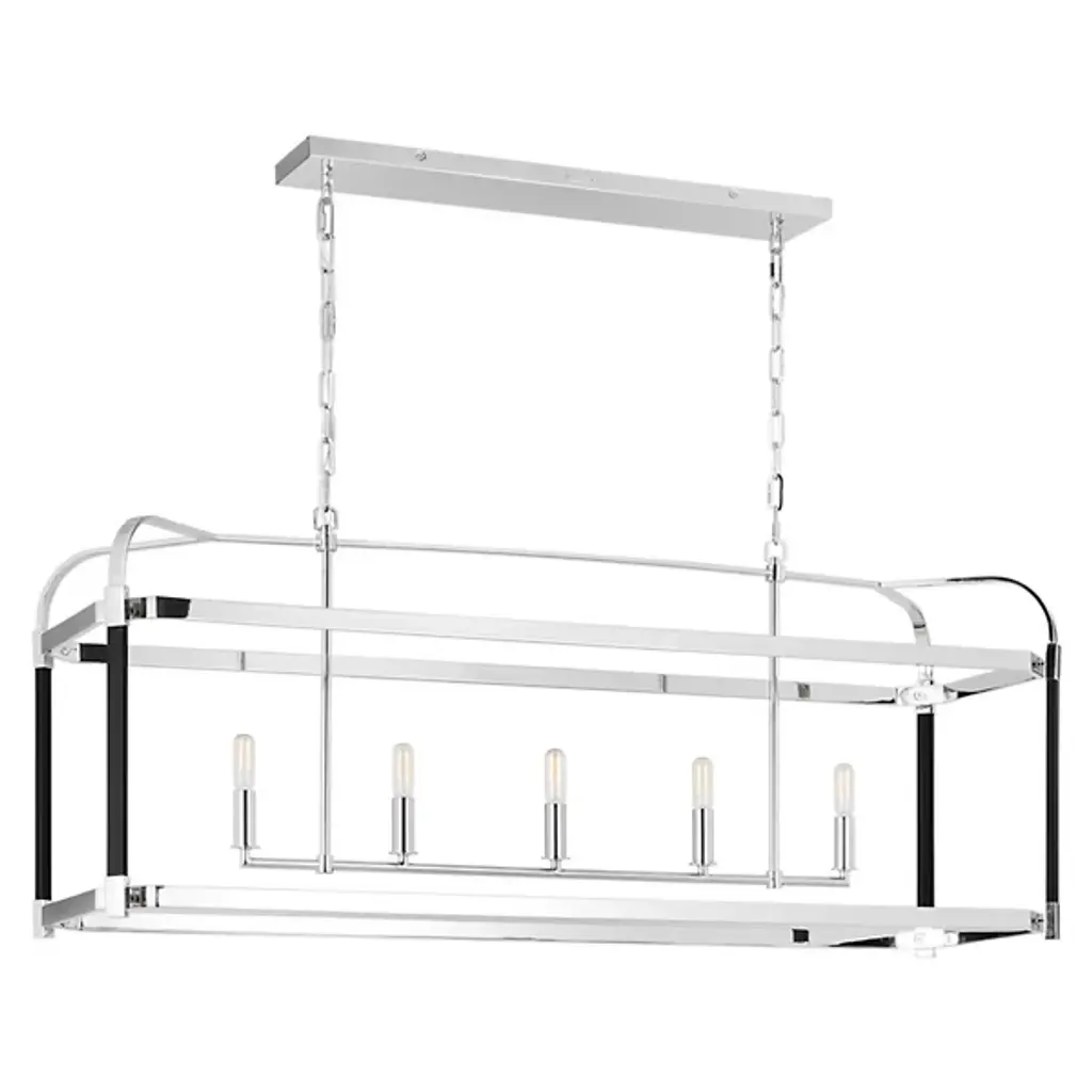 The Hadley Linear Suspension from Visual Comfort Studio extends the distinctive leather-accented design concept to longer dining tables and kitchen islands. Steel structural elements create a strong horizontal presence that organizes the space below without overwhelming it. Leather binding details at connection points introduce an unexpected textural element that breaks up the metal framework. This linear chandelier distributes light evenly across its full length, eliminating dark spots and ensuring consistent dining and food preparation illumination. Its adaptable aesthetic complements both traditional and contemporary spaces with equal success.
