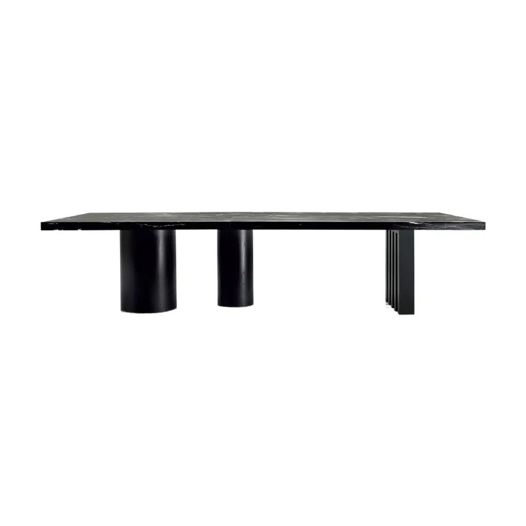 The Hailey dining table design is enriched by the precious cylindric legs that accommodate a simple light top, imposing a strong, ultra-modern feel.