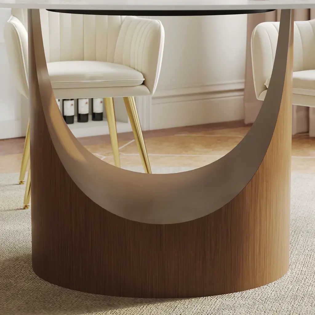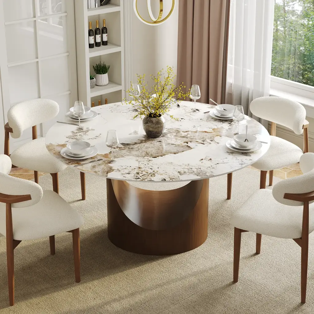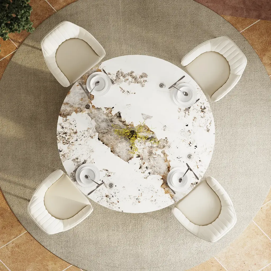 Halven 53" Sintered Stone Round Dining Table With Stainless Base Seats 4-6 People