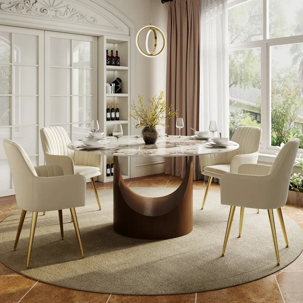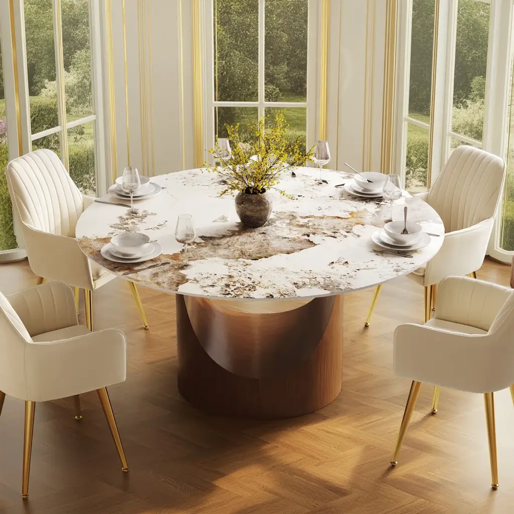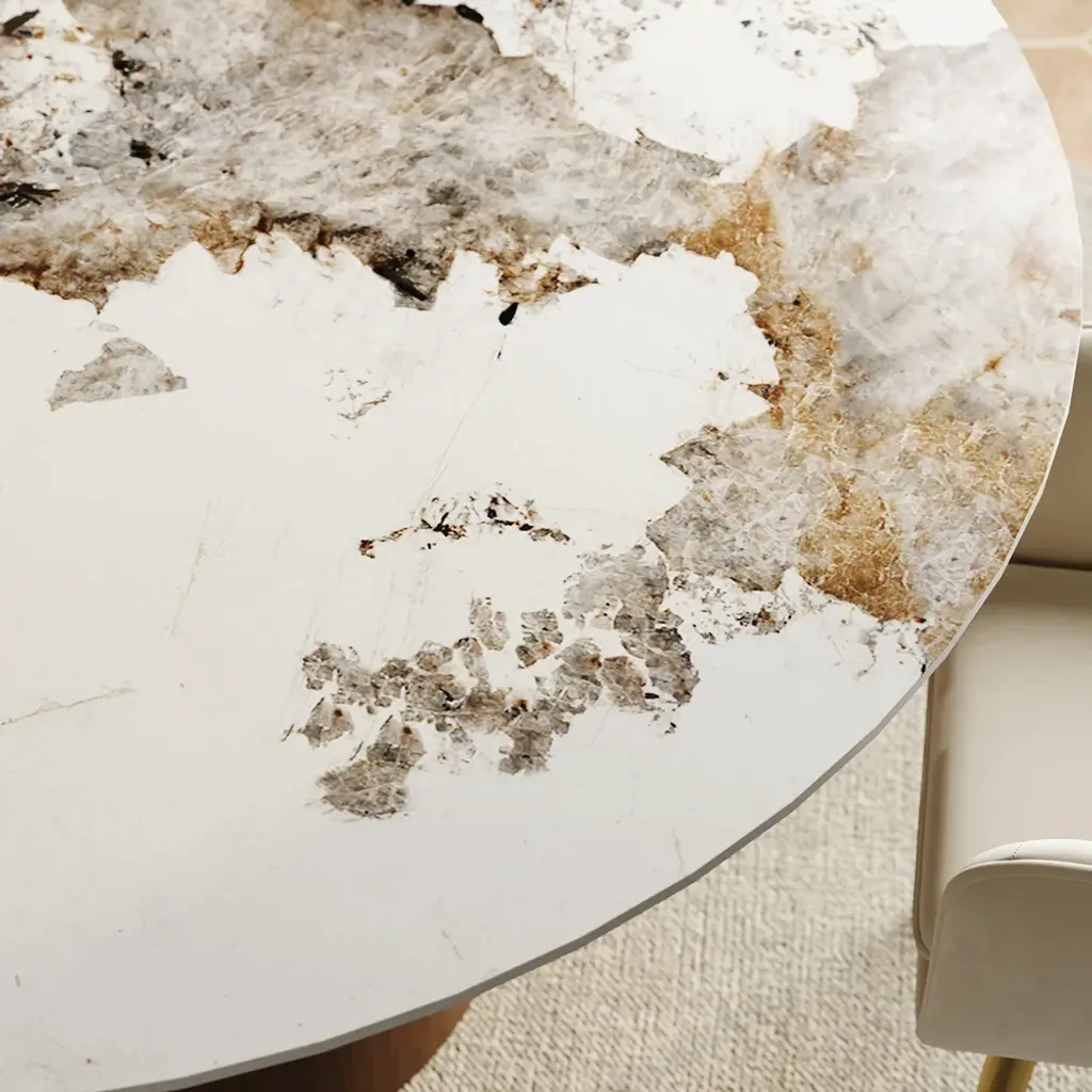 Halven 53" Sintered Stone Round Dining Table With Stainless Base Seats 4-6 People