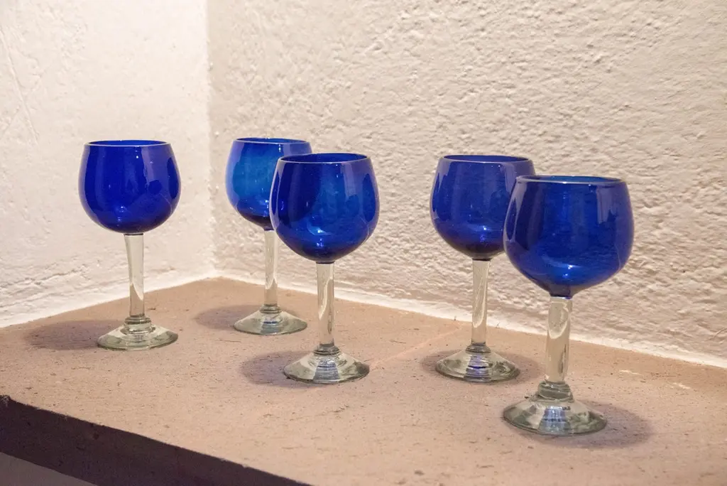 Handblown Glass Goblets Mexican Style Table Decor Cobalt Blue