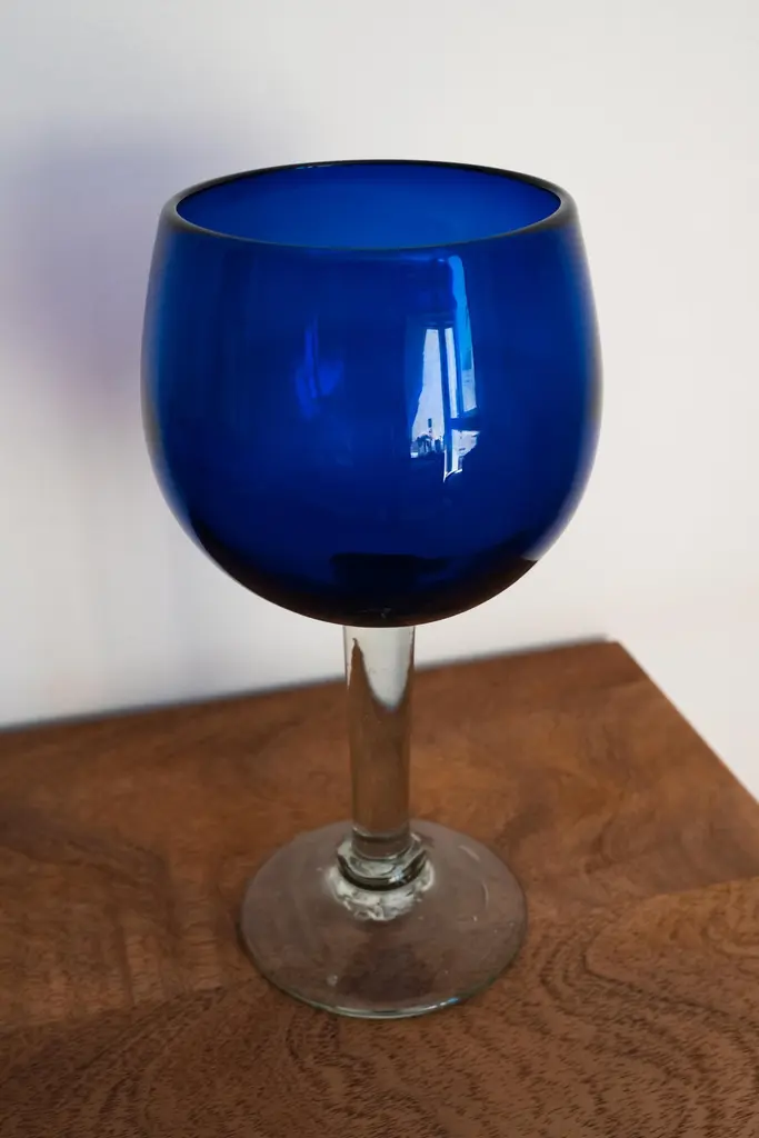 Enhance your table with these stunning handblown cobalt blue glass goblets, crafted by skilled artisans in Guadalajara, Mexico. Each piece showcases the beauty of traditional Mexican glassblowing, making them a perfect addition to wedding table décor, special events, or everyday dining. Their versatile design allows them to be used as water glasses or wine goblets, adding a touch of elegance and authenticity to any occasion.Features:•Handblown glass, crafted in Guadalajara, Mexico•Unique artisanal details with a vibrant cobalt blue hue•Perfect for weddings, events, and home table décor•Ideal for serving water or wine•Elegant design with a traditional Mexican touchElevate your table setting with these exquisite handblown glasses, where craftsmanship meets timeless style.