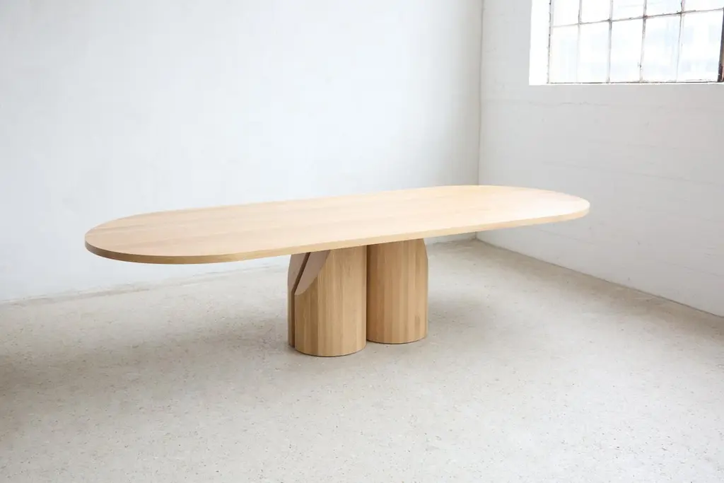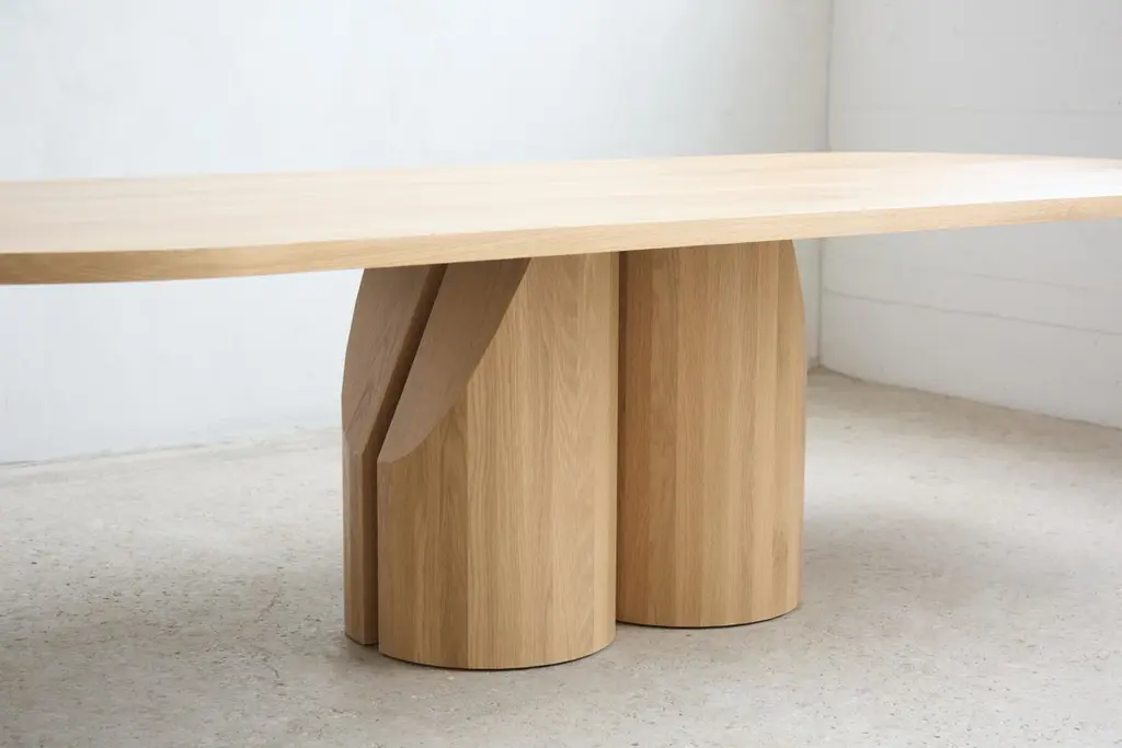 Constructed from solid wood and built to last for generations our Barrow Dining Table pushes the boundaries of what is possible with solid wood construction. Item pictured is our Barrow Table in white oak. We work with North American solid hardwoods on a made-to-order fabrication basis. The images and pricing above illustrate our use of flat cut white oak. Additional offerings in white oak, white ash, dark-stained oak, walnut & hard maple are available, with different finish oils & stains at our disposal. As all of our products are made-to-order, we cannot accept returns or refunds of purchased items. Crating, shipping & packaging materials are not included in the flat rate shipping quote provided. Installation may be required for your piece.