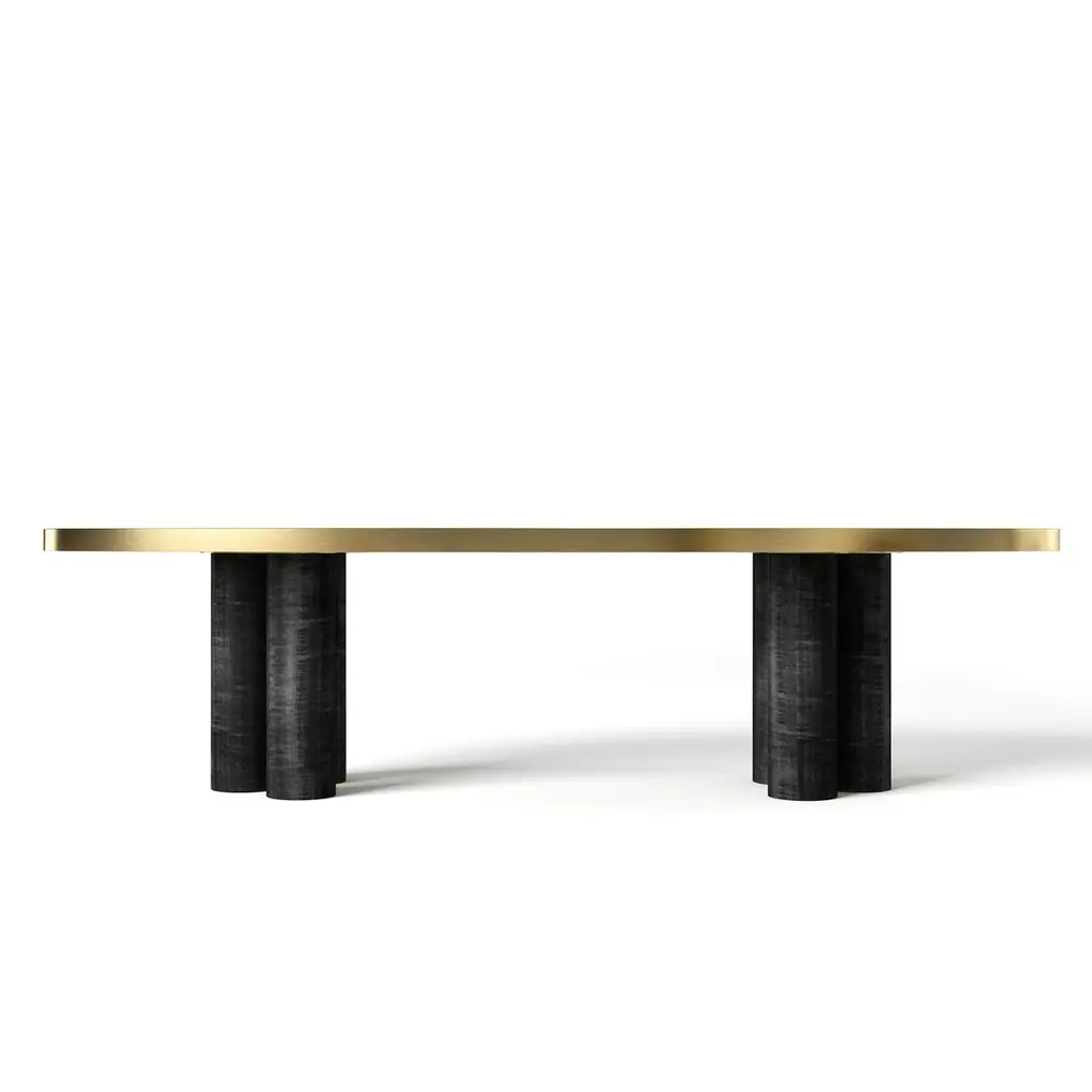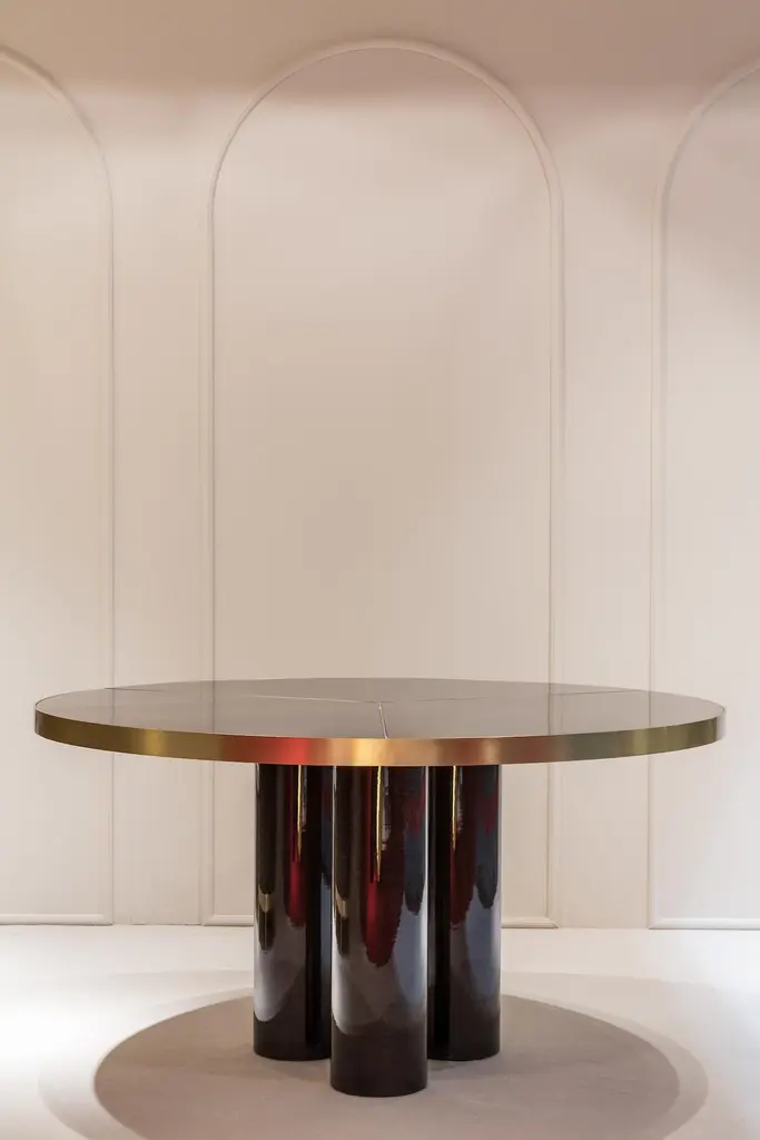 Ray dining tableThe RAY dining table is presented with a sturdy figure. The delicate brushed brass lines define and give dimension to this finest design handmade with high gloss grey figured sikomoro. A bold and statement dining table that provides an exclusive ambiance to a room.FinishesShown in high gloss frisé grey sikomoro and brushed brass details.Please contact us if you have any questions about customization and pricing. We will be glad to check with the factory’s technical team if sizes, finishes, and colors can be customized. We do our best to expedite production and to ship and deliver product within the listed lead time, however current lead times might be longer due to global shipping backlog and delays. These delays are out of our control and cannot be a reason to cancel an order.