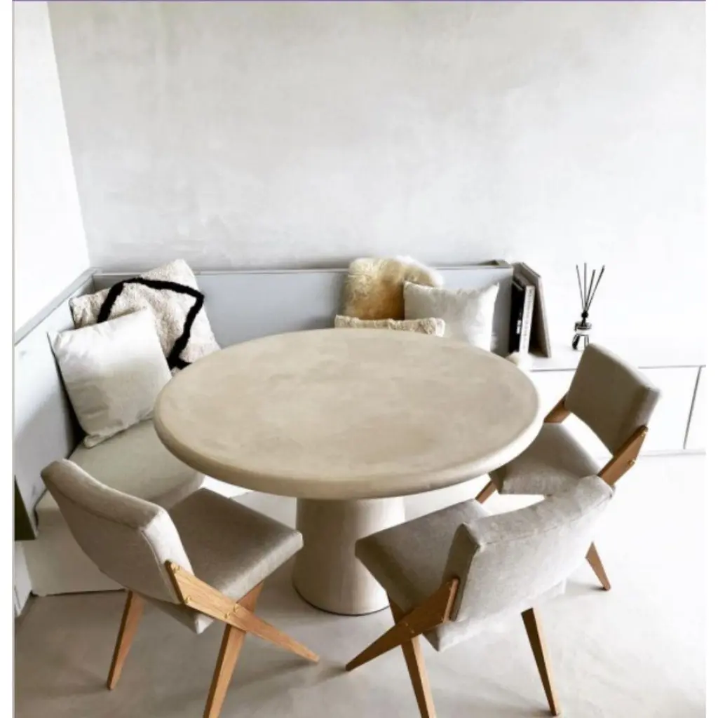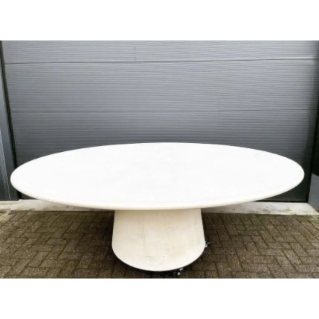 Handmade Outdoor dining table 160 by Philippe ColetteDimensions: Ø 160 / 6 pers.Customized heightMaterials: Mineral lime plaster.All shapes / sizes can be customized. Wide range of colors.Our tables are in mineral lime plaster, unlike mortex, they are very natural, not artificial (plastic like mortex).The tables are 100% stain and acid resistant and maintenance free.100% artisanal tables 'made in Belgium'.