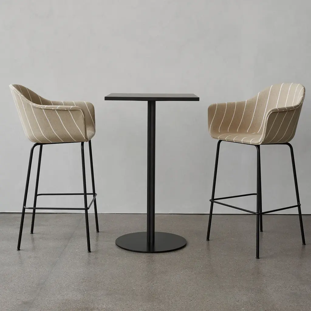 The Harbour Column Table is available with three tabletop sizes: two round and one rectangular. Each can be crafted in charcoal linoleum, black oak veneer, or off white marble to suit your space and design preferences. The clover-shaped column base is constructed in steel and aluminum in a black powder coated finish, with dining, counter and bar heights to fit numerous needs in homes, workplaces, cafes, lobbies, the possibilities are endless. Mix and match bases and tabletops to create your ideal pairing.