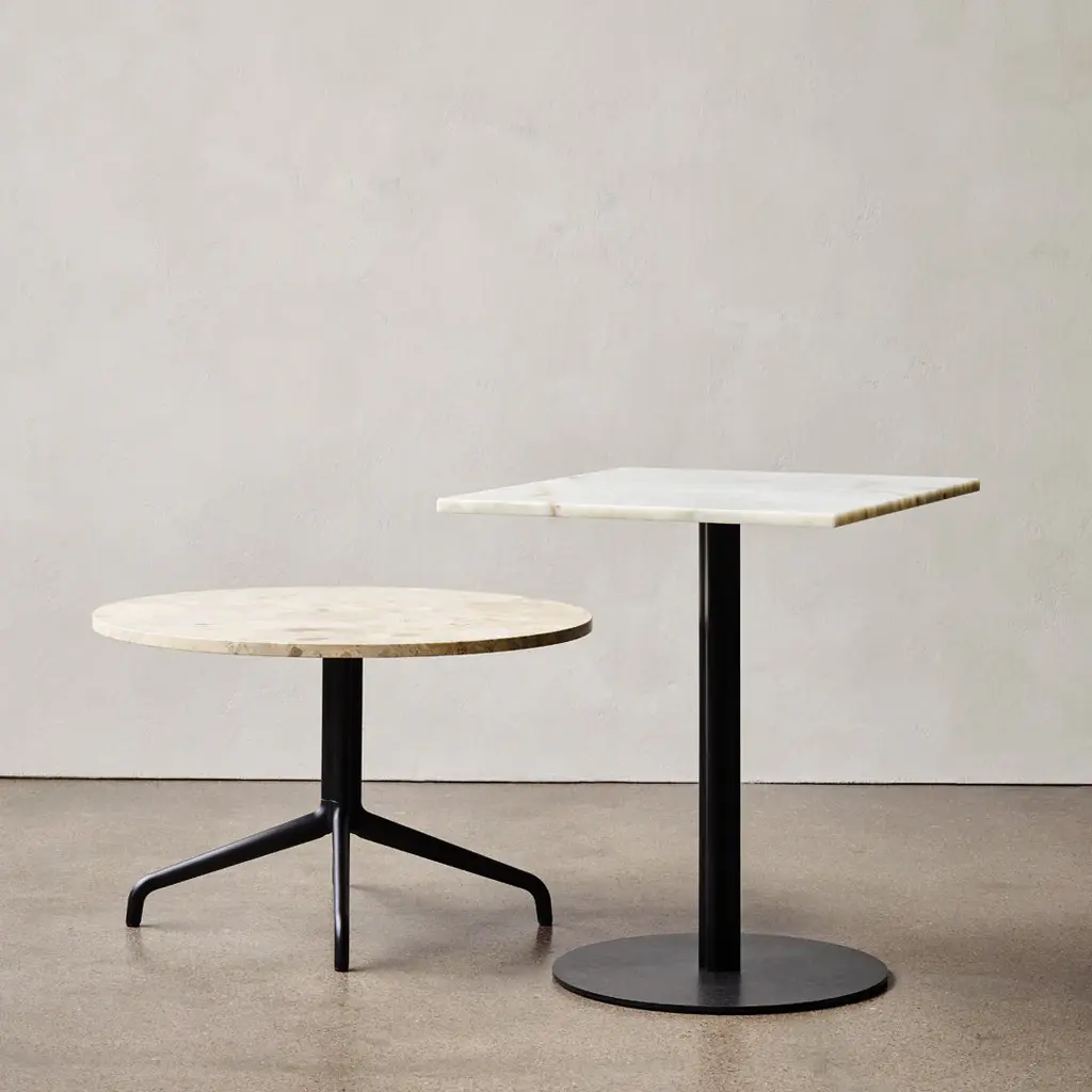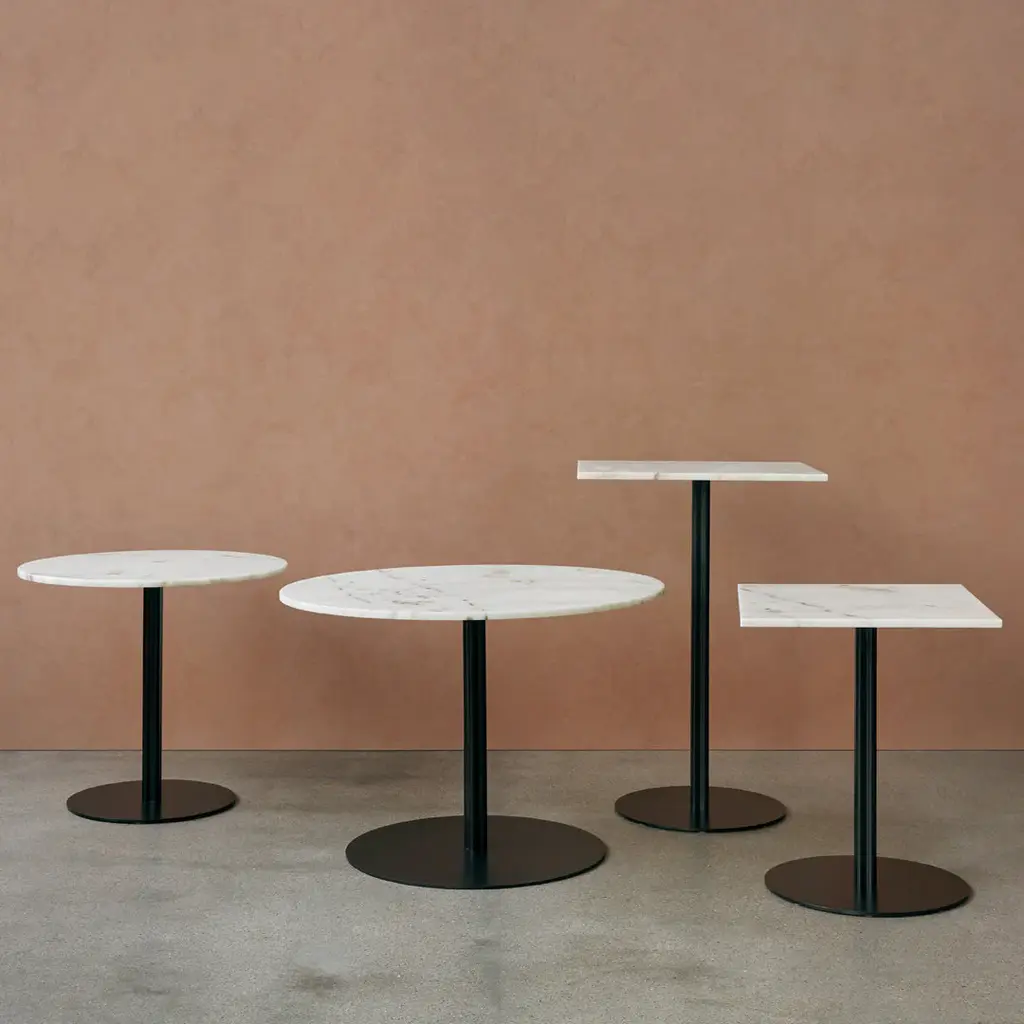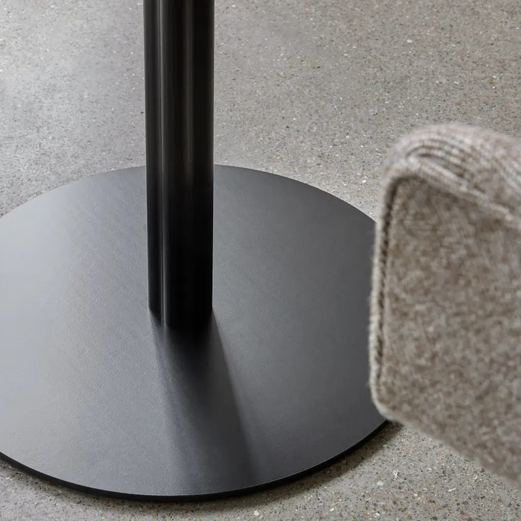 The Harbour Column Table is available with three tabletop sizes: two round and one rectangular. Each can be crafted in charcoal linoleum, black oak veneer, or off white marble to suit your space and design preferences. The clover-shaped column base is constructed in steel and aluminum in a black powder coated finish, with dining, counter and bars to fit numerous needs in homes, workplaces, cafes, lobbies, the possibilities are endless. Mix and match bases and tabletops to create your ideal pairing.