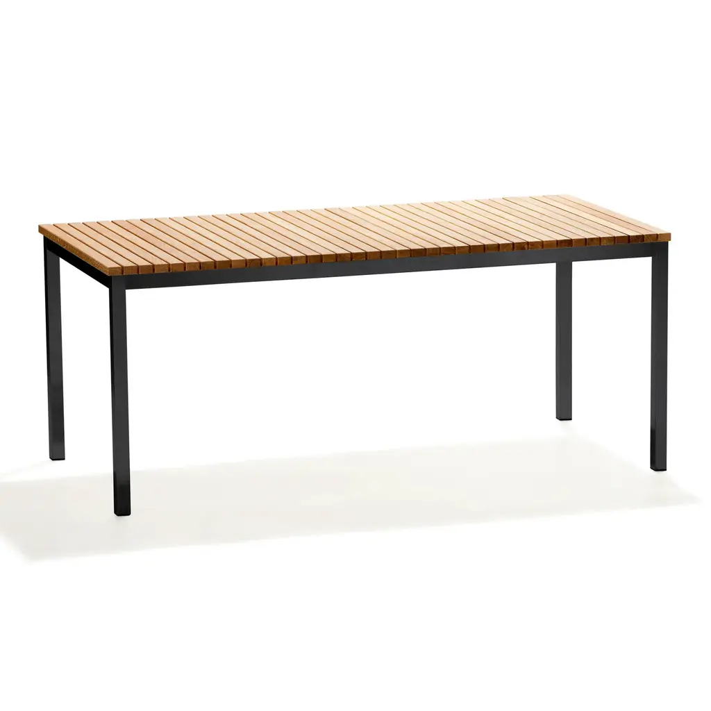 The Häringe table is a dining table in a black stainless steel frame with teak. Features