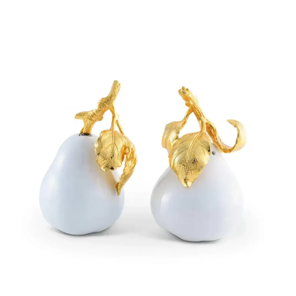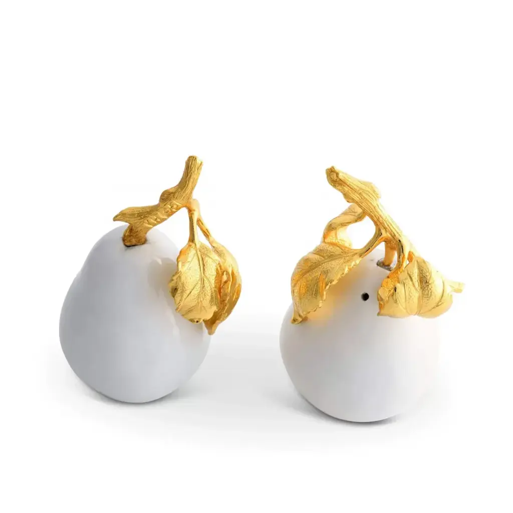 Harvest Porcelain Pear Salt And Pepper With Gold Leaf