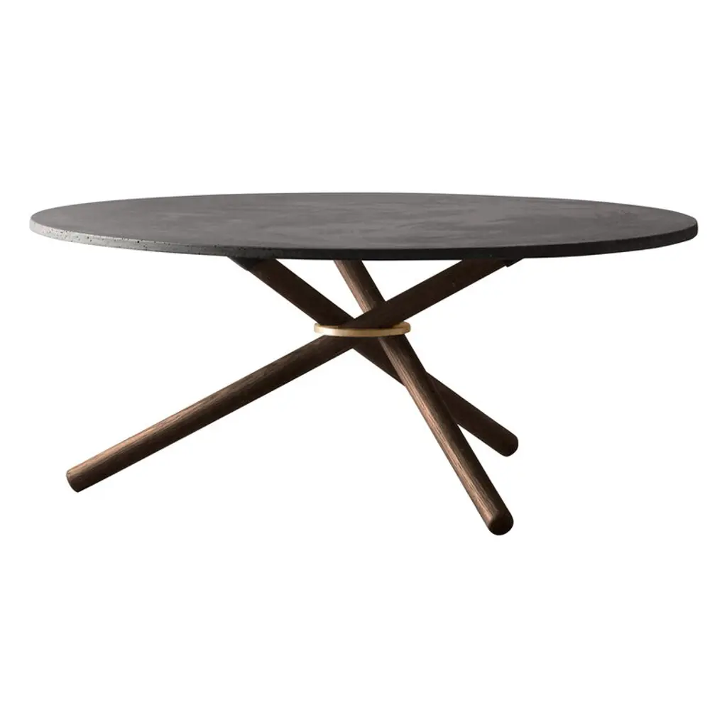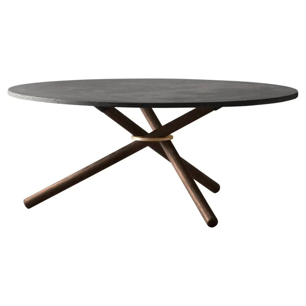Eberhart Furniture’s Hector dining table features a simple, elegant shape perfected with eye-catching details – a brass ring supports the stunning leg structure, creating an interesting contrast with the sophisticated combination of oak and dark concrete. The round dining table sits effortlessly into a wide range of interiors, and the natural materials exude a calm and harmonious mood. Designed to stand the test of time, the timelessly beautiful Hector dining table is a refined addition to both private dining areas and public cafes or restaurants.