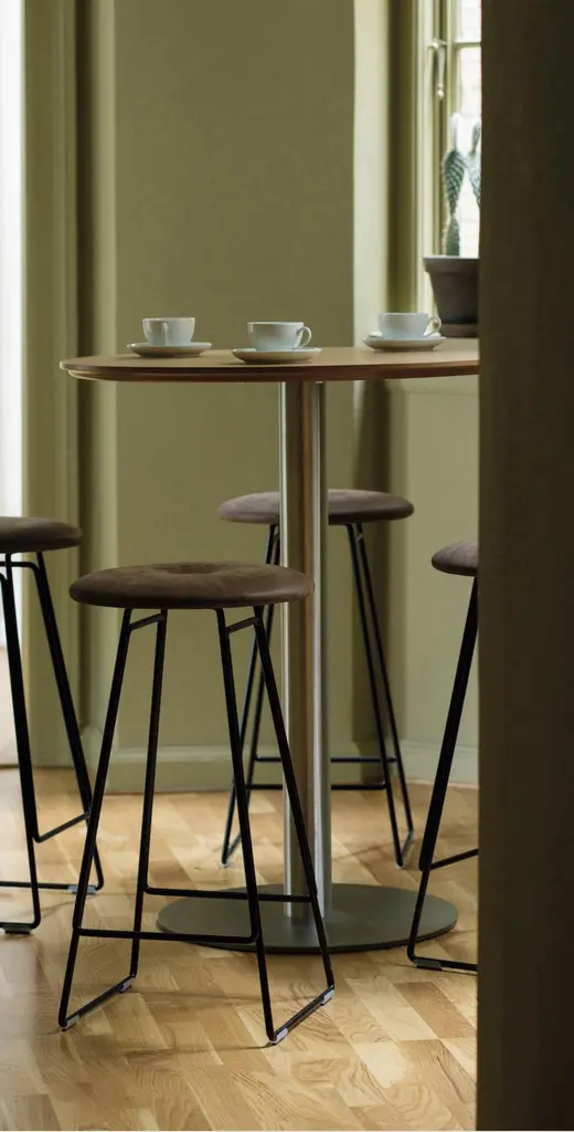 Henrik Tengler Train High Table Legs: Graphite, Tabletop: Oak Dark Oil For One CollectionPart of the original Train Table Series designed by Henrik Tengler in 2004, the Train High Table stands as a distinct model within this versatile collection. Specifically designed for elevated environments such as chic bars, modern kitchens, and stylish dining areas, it harmonizes in both aesthetics and functionality with these sophisticated spaces.The Train High Table is characterized by its detailed organic edge profile, which gives it the series’ hallmark soft corners and edges. This design element not only enhances the table’s visual appeal but also contributes to its welcoming and refined character.For tabletop choices, options include linoleum, laminate, or veneers in teak, oak, ash, or walnut, catering to varied tastes and interior styles. The base options, available in powder-coated steel or brushed stainless steel, offer additional customization to suit different design needs.General InfoDesign by: Henrik TenglerYear: 2004Dimensions:Tabletop: HT 9101Ø: 80 cmPedestal Foot: HT 9669SSØ: 60 cm x H: 110 cmDifferent tabletops and pedestals can be combined in almost endless ways. All elements are listed individually in the product sheet. SpecificationsModel and materials:Tabletop: Linoleum, laminate, or veneers in teak, oak, ash, or walnut.Pedestal Foot: Powder-coated steel or brushed stainless steel.The Train Series reflects Henrik Tengler’s meticulous attention to detail, drawing inspiration from Finn Juhl’s design ethos as exemplified by his famous Silver Table. Tengler’s focus on subtle yet significant features, such as the edge profiles and the gentle corners, infuses the table with an understated elegance. In contrast to the more flamboyant Silver Table by Finn Juhl, the Train High Table is designed with a neutral, versatile approach. It aims to be functionally adaptive and aesthetically complementary, allowing the chairs or stools around it to be the centerpiece of the setting.Important information regarding images of products:Please note that some of the images show other colors and variations of the model, these images are only to present interior design proposals. The item that is selling is on the first image.Important information regarding color(s) of products:Actual colors may vary. This is due to the fact that every computer monitor, laptop, tablet and phone screen has a different capability to display colors and that everyone sees these colors differently. We try to edit our photos to show all of our products as life-like as possible, but please understand the actual color may vary slightly from your monitor.About Designer: Henrik Tengler graduated from The Royal Danish Academy of Fine Arts in 1988 and has more than 26 years of experience with furniture design and interior design. In 1992 Onecollection put the first chair from Henrik Tengler into production. The chair named Chairman later on became Onecollection’s best selling piece of furniture with more than 50.000 sold to date.Henrik Tengler has frequently contributed to what characterizes Onecollection’s furniture collection – stylish, yet functional quality designs. Over the years Henrik Tengler has created innovative and timeless solutions, whether it has been furniture or interior projects around the world.Henrik Tengler has also designed the tableseries Train, eZone and the Time Chair which have become classics for modern offices and conference rooms.About Manufacture:From our location in a small spot as far west as you can go in Denmark, we’ve captivated clients worldwide, ensuring they believe in our projects. While our journey encountered its share of challenges, our unwavering passion and enthusiasm have continuously persuaded stakeholders, including initially skeptical banks, to support us. This perpetual commitment and belief in OneCollection are why our presence continues to thrive today.Established by Ivan Hansen and Hans Henrik Sørensen in 1990, the main ownership remains with the two founders who guide a team passionately dedicated to the values and mission of the company.From the very beginning, our journey has been self-propelled, building a reputable furniture business grounded in core principles such as passion, quality, collaboration, trust, and humour. Our depth of knowledge in the furniture industry and exceptional Danish furniture design has been pivotal, coupled with a perpetual desire to work autonomously, ensuring freedom and responsibility in our decision-making processes.Driven by a perpetual ambition to elevate OneCollection as one of Denmark’s paramount design companies, we have always strived for excellence in crafting culturally significant, high-standard furniture designs. Our path has often strayed from the conventional, embracing a unique and sometimes unacademic approach, fueling our journey through intuition and courage to stand alone when necessary.Envisioning our future, we stand firmly as a free and independent company, opting for organic growth that is firmly rooted in our values.The OC brand is at the forefront of contemporary design, seamlessly blending unique quality with a keen perception for international design aesthetics. We take pride in our collaborations with leading architects to craft furniture with a distinct residential touch. While our designs fit into diverse spaces, our primary focus is on the professional market, specifically targeting office & conference, culture & hospitality, and the care segments.Through enduring partnerships with these skilled and congenial designers, we have persistently evolved our furniture collection. Our journey is dotted with numerous small and large furnishing and interior design solutions, meticulously curated for various spaces in Denmark and internationally.The OC collection embodies a diverse range of designs, mainly aimed at the contract market, meticulously designed by talented designers such as Salto & Sigsgaard, H