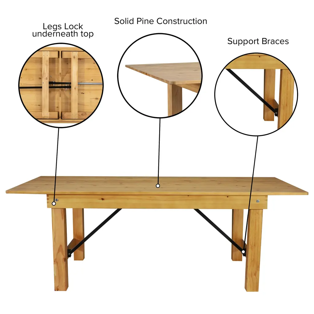 Hercules Series 8' X 40" Solid Pine Folding Farm Table