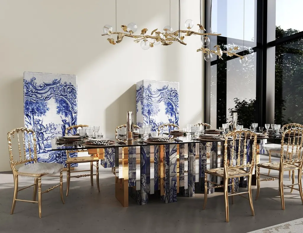 Heritage Dining Table - Hand-Painted Tiles - Glass & Brass - Boca Do Lobo
