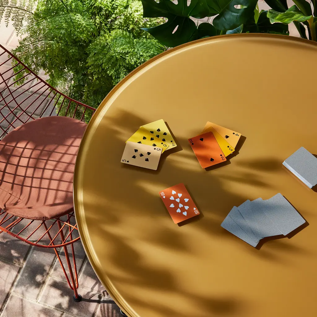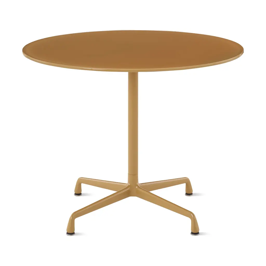 Designed in 1964 by Charles and Ray Eames, the Universal Base Table is an elegant take on the modern round dining table, but versatile enough to use in any room in your home. For this Herman Miller x HAY version, the original’s wooden top is now rendered in outdoor-safe tempered glass in a color palette chosen by HAY, with a tonal Eames universal base. Herman Miller, HAY and Charles and Ray Eames are all represented in MoMA’s collection.  Features of the Herman Miller x HAY Eames Universal Base Round Table include: Designed by HAY and Charles and Ray Eames. Introducing a tempered glass table top that celebrates color, tactility and light.  The tempered glass offers a saturated yet translucent effect. Tonal base made from powder-coated steel. For indoor and outdoor use. Available in a color palette chosen by HAY, meant for endless interplay and combination. This is an authentic Herman Miller Eames Universal Base Table, verified by an authenticity certificate included in every order. Manufactured in the USA by Herman Miller.  Leveling floor glides. Measures 28.5h x 36w x 36”d and a 36”diam. table top.