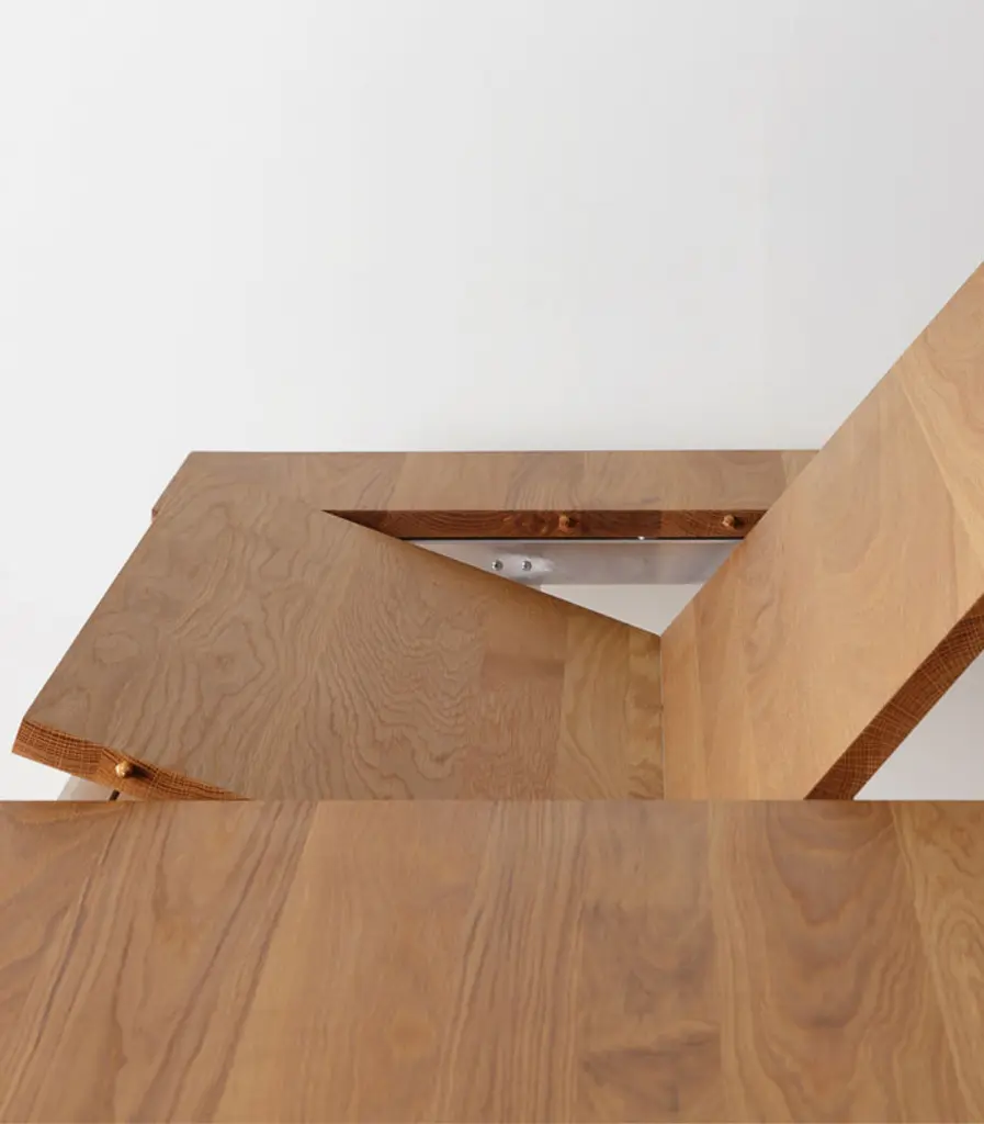 Made in a generous scale and cut from an expanse of solid white oak, the Highland Extension Dining Table celebrates organic imperfection with elegantly curving legs and blended joinery. Utilizing a sophisticated butterfly system that nests leaves discretely below the piece, the table expands from six place settings to ten when fully extended. Wood is hand-rubbed with Kalon Bare Finish, our premium, organic plant-based oil/wax finish.
