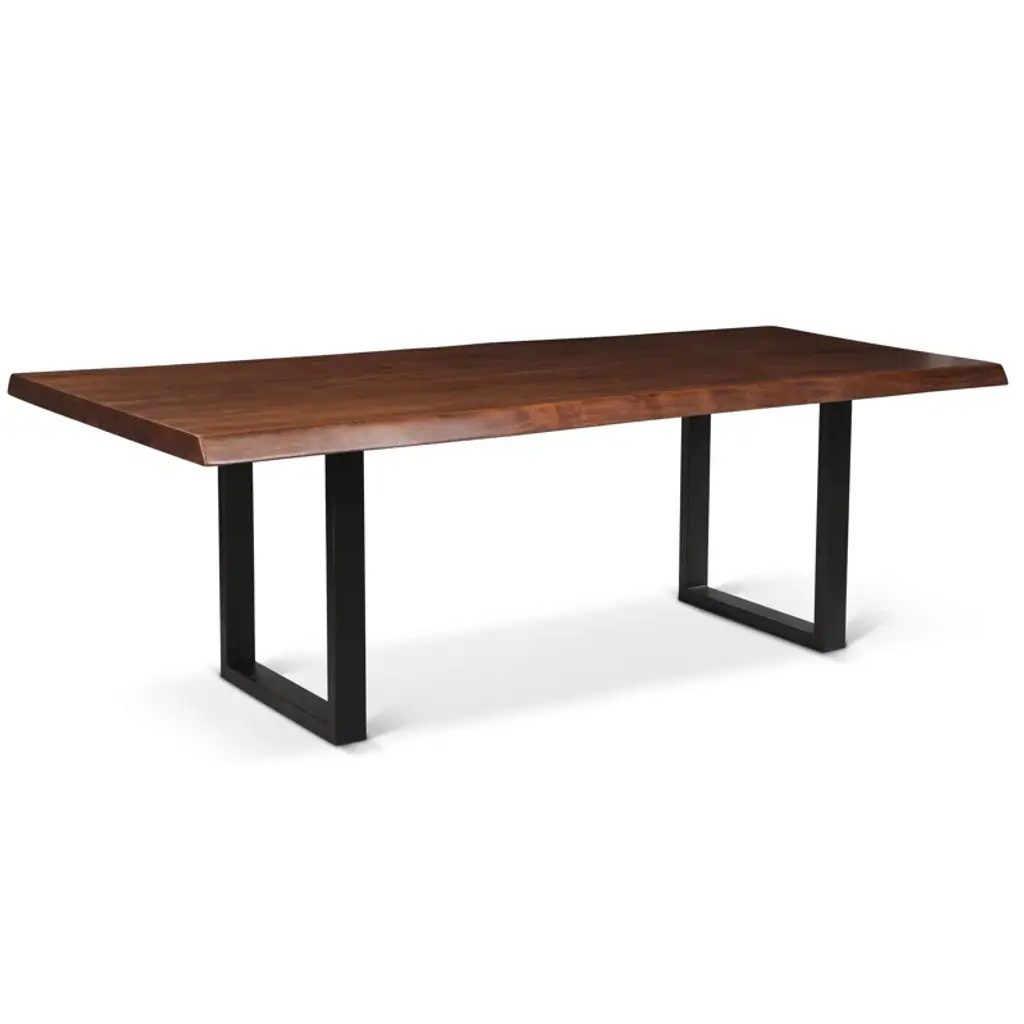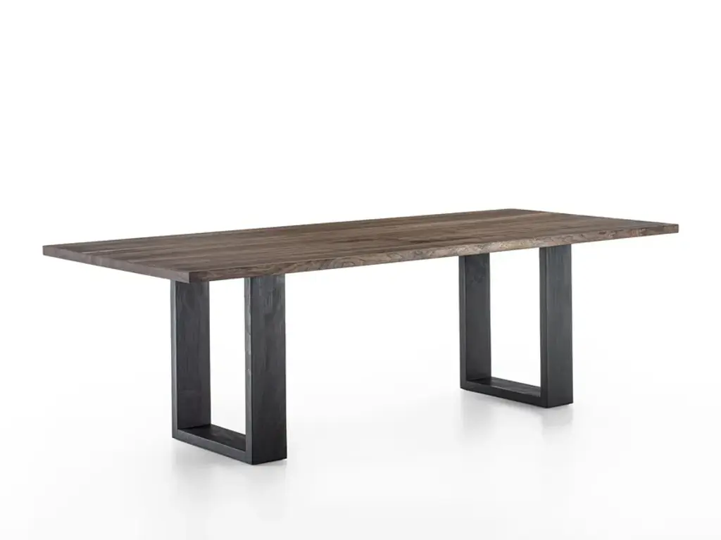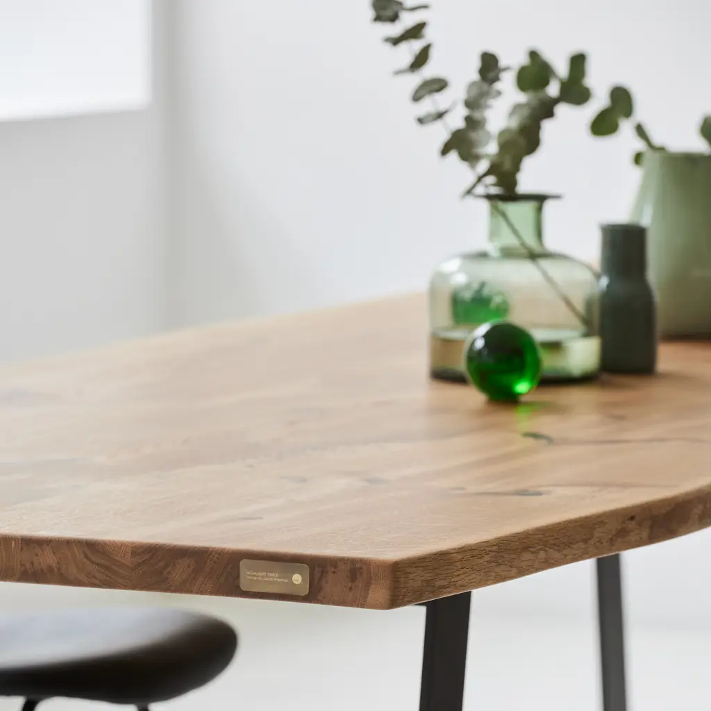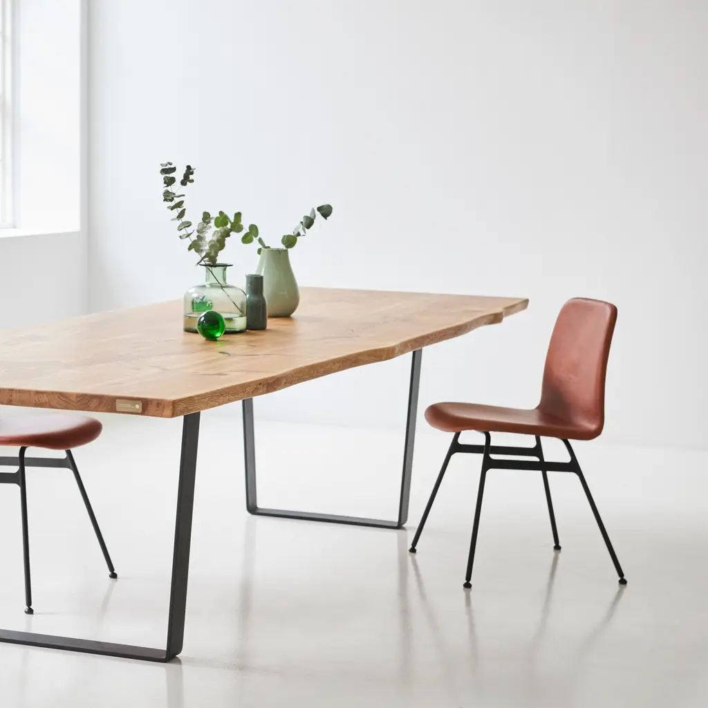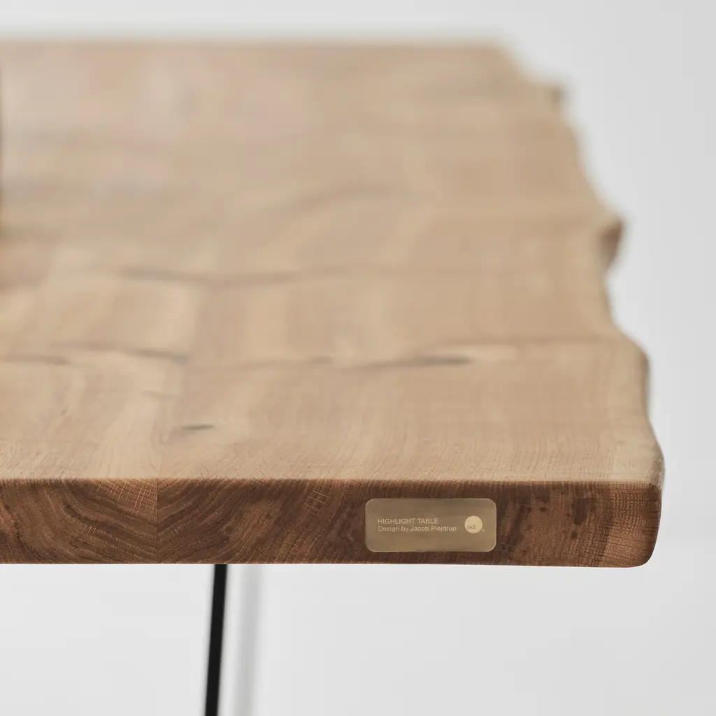 The Highlight Table is a masterpiece of traditional carpentry and contemporary Danish design. Part of the dk3 furniture collection, this Jacob Plejdrup-designed table highlights the beauty of nature with a creative design. The top boasts solid wood planks with natural side edges that feature curves and undulating forms. Knots and grain textures along with organic lines and warm colors bring a rustic accent into interiors. By contrast, the base is crafted from stainless steel and features an elegant black-powder-coated finish for more durability and wear resistance. A perfect choice to create a focal point in a room, whether you want to use the Highlight Table in a family dining room or in an office meeting room.