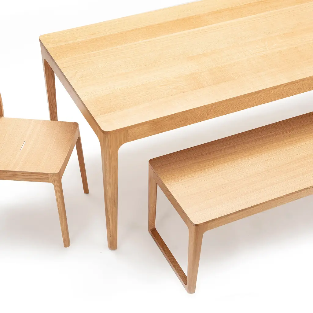 Appearing in 2000, Home was Barber & Osgerby’s first furniture project for London’s Isokon made of solid wood. An exercise in simplicity with its gently curving corners and tapering legs, the duo feels the table should sit almost anonymously within a space. Rendered in natural unfinished or clear lacquered oak, it’s handmade in the UK.