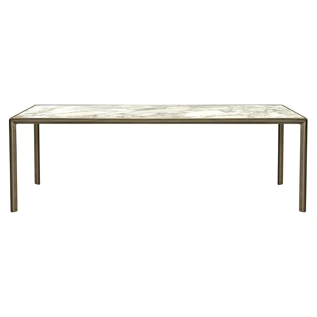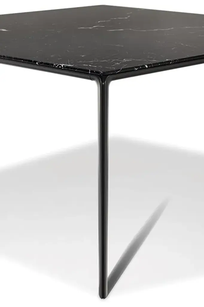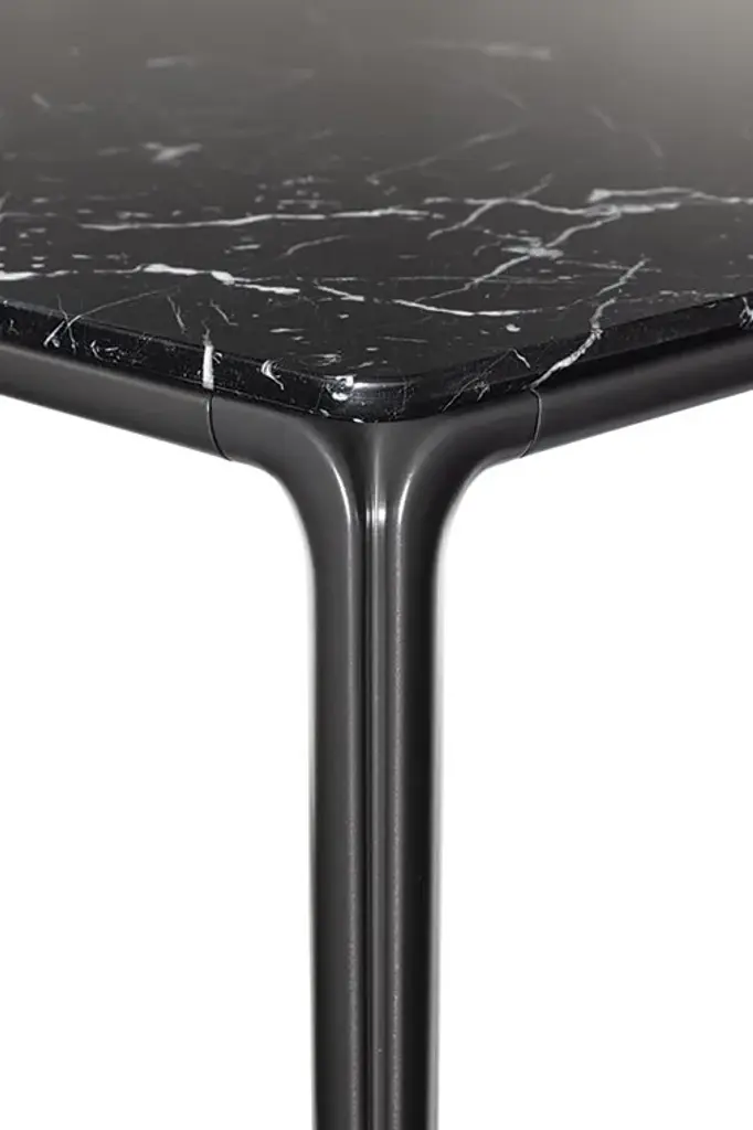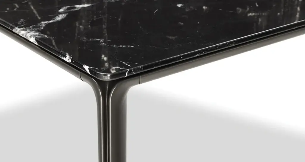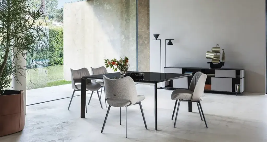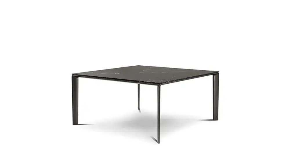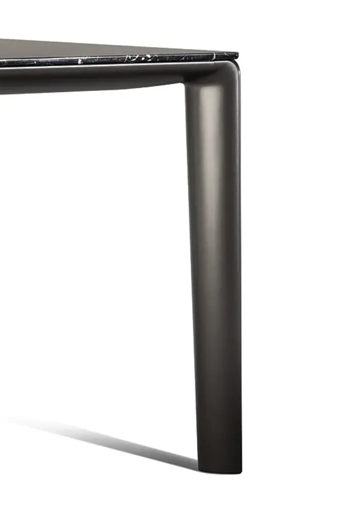 The Homey dining table designed by GamFratesi aims to shine a renewed light on the value of the home and emphasize the centrality of its role in domestic settings that are increasingly attentive to sharing. This designer table is compact and graphic, characterised by light but volumetric lines, enriched by fine and expertly worked materials.The quintessence of Homey is expressed in its die-cast aluminium legs. In a sculptural play reminiscent of haute couture, the two leg flaps fold and join together without touching, creating a chiaroscuro effect in the centre. A refined stylistic exercise that recalls the workmanship of leather, Poltrona Frau's material of choice. The lines of the two flaps open slightly at the top to transform into the shelf that supports it. The dining table is produced in four sizes in a rectangular and a square version, and supports wooden or marble tops. Homey introduces a more contemporary language of design for a warm and welcoming home, full of elegant and distinctive products.